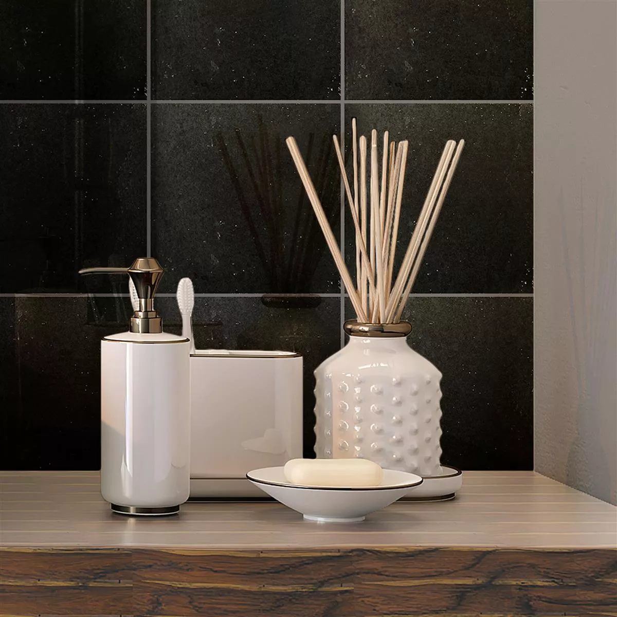 Med en tjocklek på 9 mm och ett kvadratiskt format på 15x15 cm passar kaklet perfekt in i interiörer som badrum, kök, vardagsrum eller duschar. Tack vare sin lämplighet för våtutrymmen är den särskilt lämplig för fuktiga miljöer och ger dessa rum en elegant och stämningsfull atmosfär.