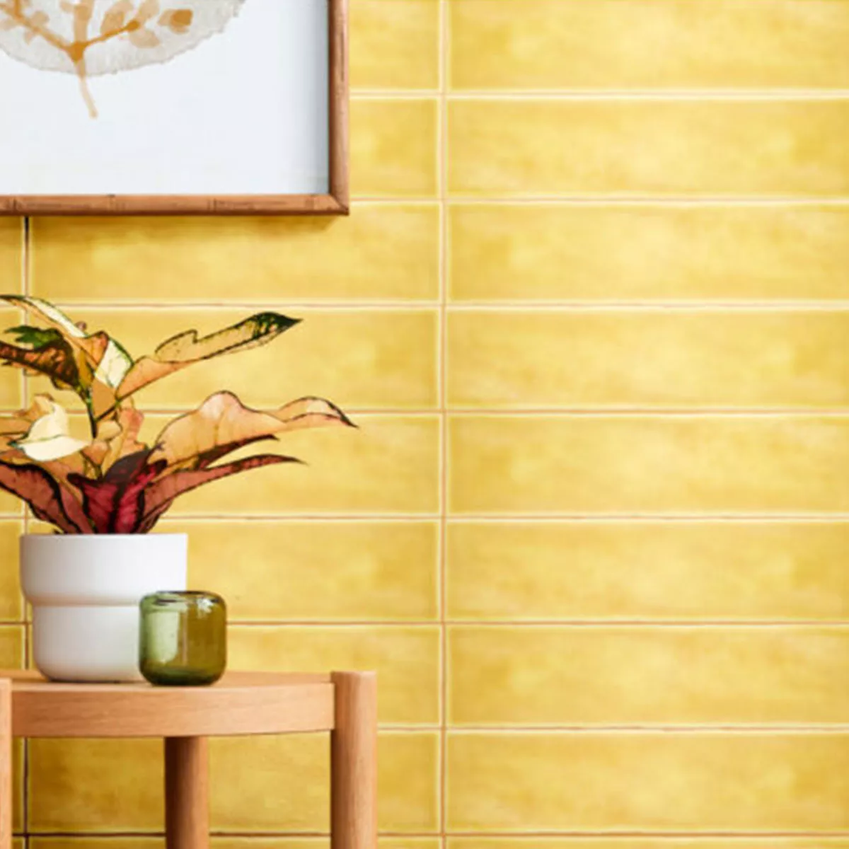 För in en fräsch atmosfär i dina rum med våra Lugo väggplattor i våggult. Dessa glaserade rektangulära plattor som mäter 7,5x30 cm och 8,4 mm tjocka ger dina väggar en unik vintagelook. Den vågiga, glänsande gula ytan skapar en levande och tilltalande estetik.