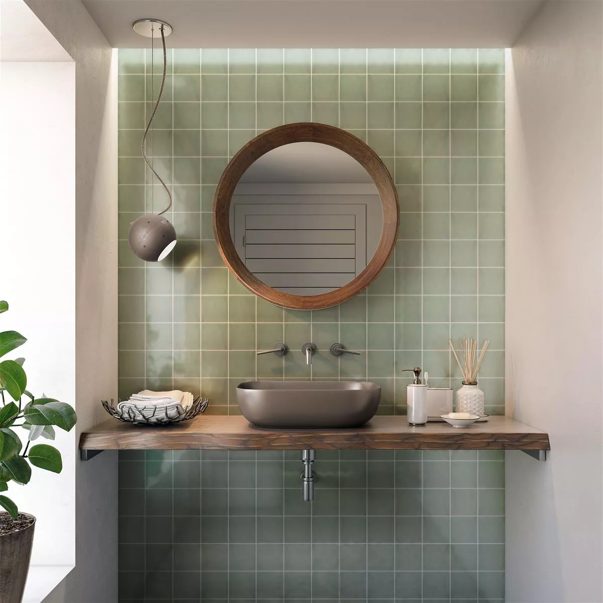 Kakelplattans blanka, vågiga yta skapar fascinerande ljusreflektioner och ger dina väggar ett strukturerat, elegant utseende. Med en tjocklek på 9,5 mm och en kvadratisk storlek på 13x13 cm erbjuder plattan både robusthet och flexibilitet vid läggning. Det kompakta formatet möjliggör kreativa designalternativ och är idealiskt för badrum, kök, våtutrymmen, interiörer, vardagsrum och duschar.