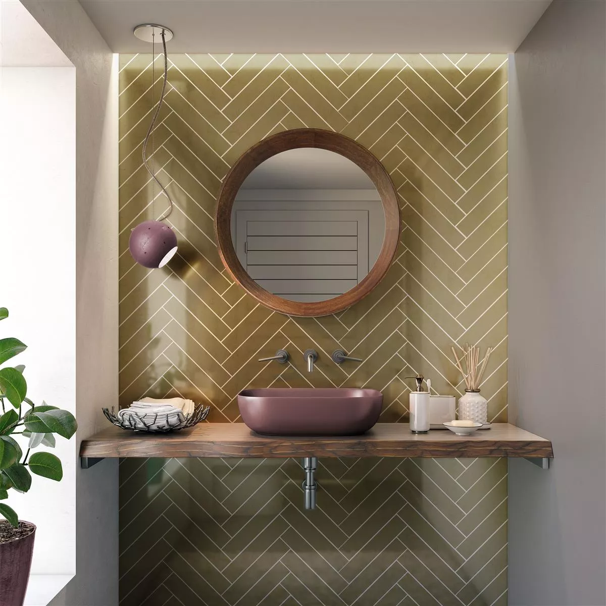 Tamaris plattan är inte korrigerad och har en glaserad naturlig kant, vilket ger vintagelooken ytterligare känsla. Den gyllene ytans speciella färgspel skapar lyxiga visuella effekter och sätter överdådiga accenter. Ett paket innehåller 60 plattor, som tillsammans täcker en yta på 0,75 m² och väger 12,6 kg. Genom att kombinera estetisk sofistikering med praktiska funktioner, är denna väggplatta ett enastående val för sofistikerad och elegant inredning.