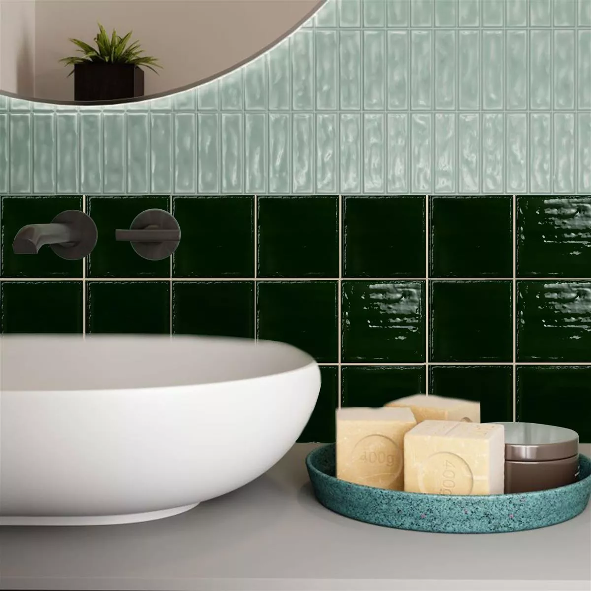 Verbania väggplattor i mörkgrönt mått på 20x20 cm och en tjocklek på 7,8 mm ger dina rum en vintagelook. Den glansiga finishen och mörkgröna färgschemat skapar en elegant atmosfär.