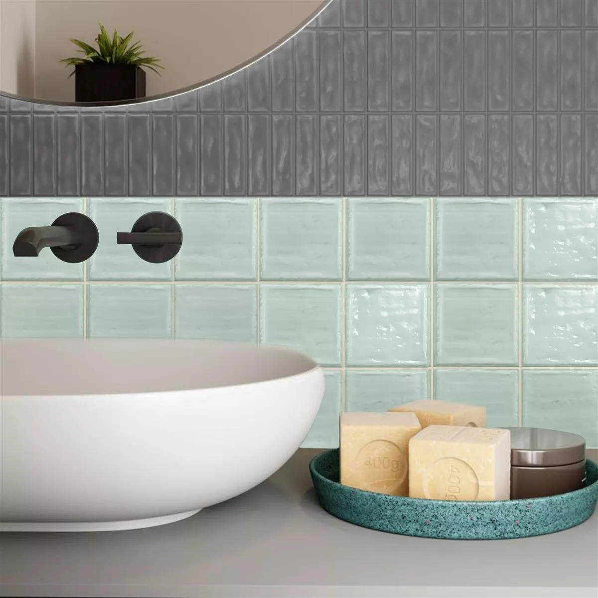 Dessa glaserade fyrkantiga plattor som mäter 20x20 cm och 7,8 mm tjocka kommer att ge ditt hem en vintage-estetik. Den vågiga, glänsande ytan och den livfulla turkosa färgen skapar en inbjudande atmosfär.
