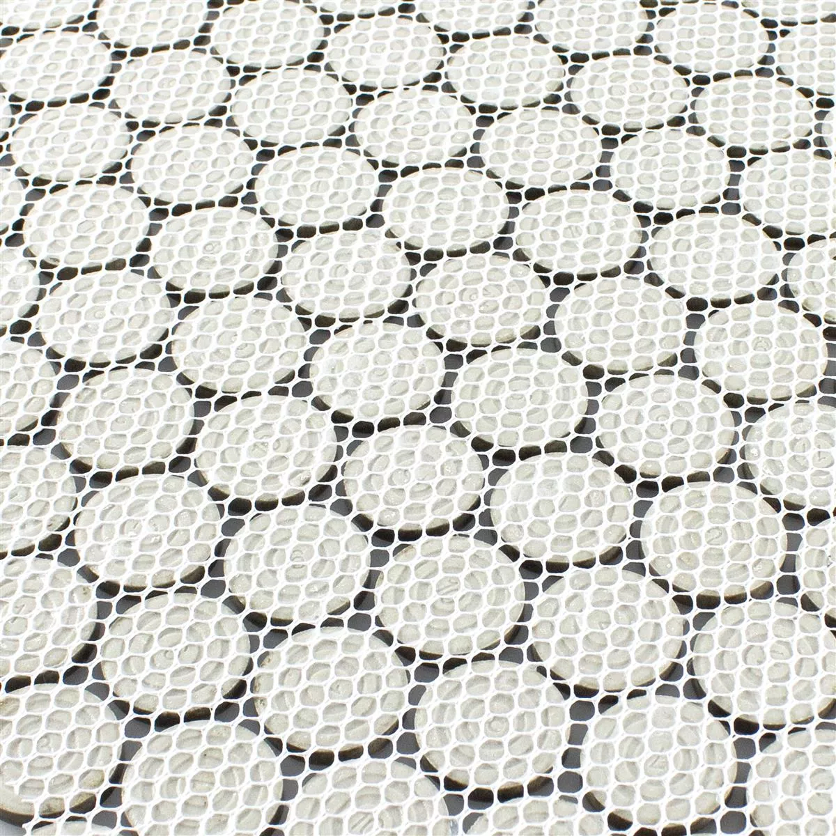 Med en diameter på 19 mm och en tjocklek på 5 mm erbjuder varje platta en elegant, rund form. Kakelmattan mäter 31 x 31,5 cm och täcker en yta på 0,098 m², vilket gör den idealisk för mindre till medelstora ytor.
