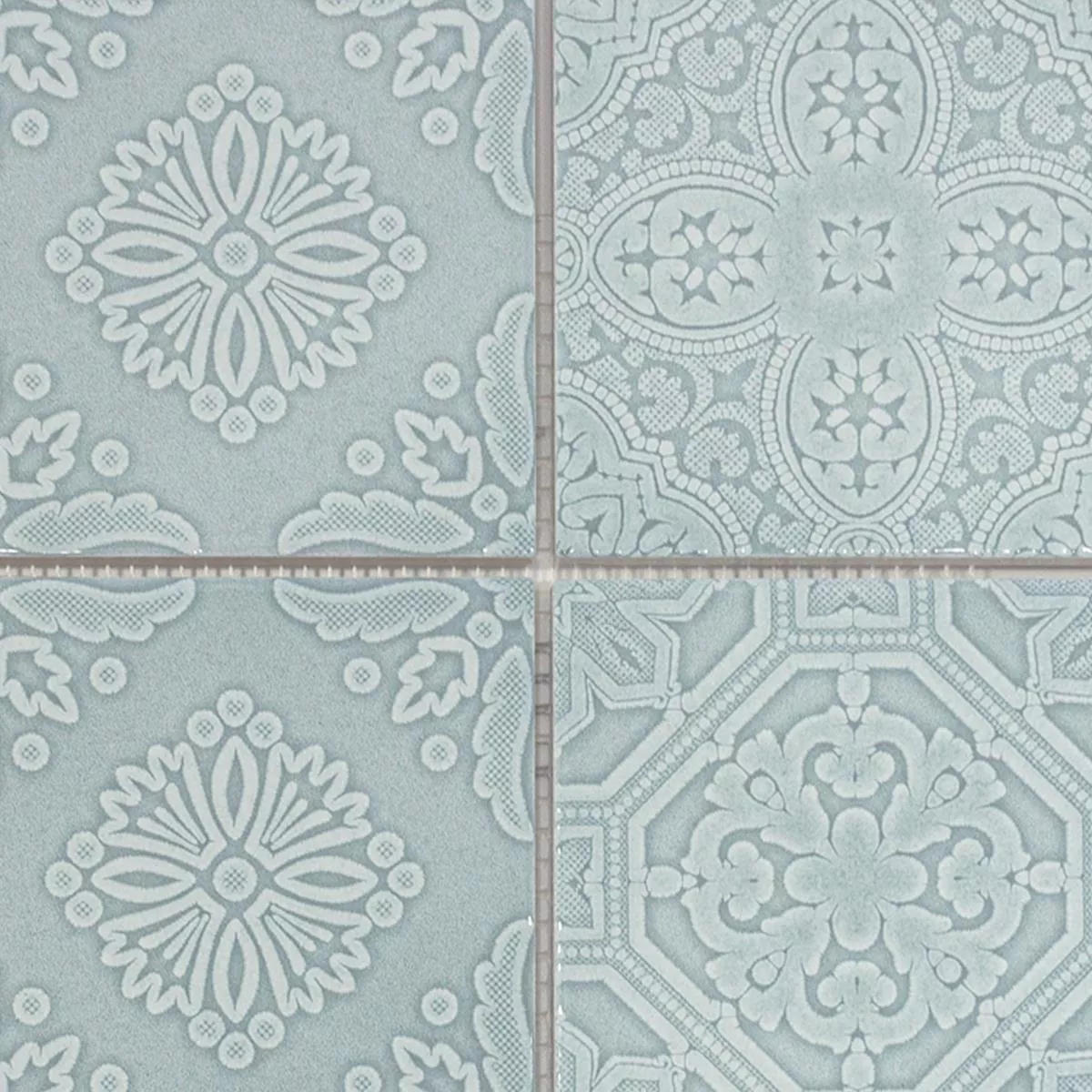 Ge ditt rum liv med Rivabella Relief Green keramiska mosaikplattor. Dessa golv- och väggplattor med en stenstorlek på 97x97 mm lägger till retro-chic till ditt vardagsrum, kök och badrum. Den blanka ytan och reliefdesignen skapar en unik estetik. Med en tjocklek på 6,5 mm och en fogbredd på 3 mm erbjuder de robusthet och enkel installation.