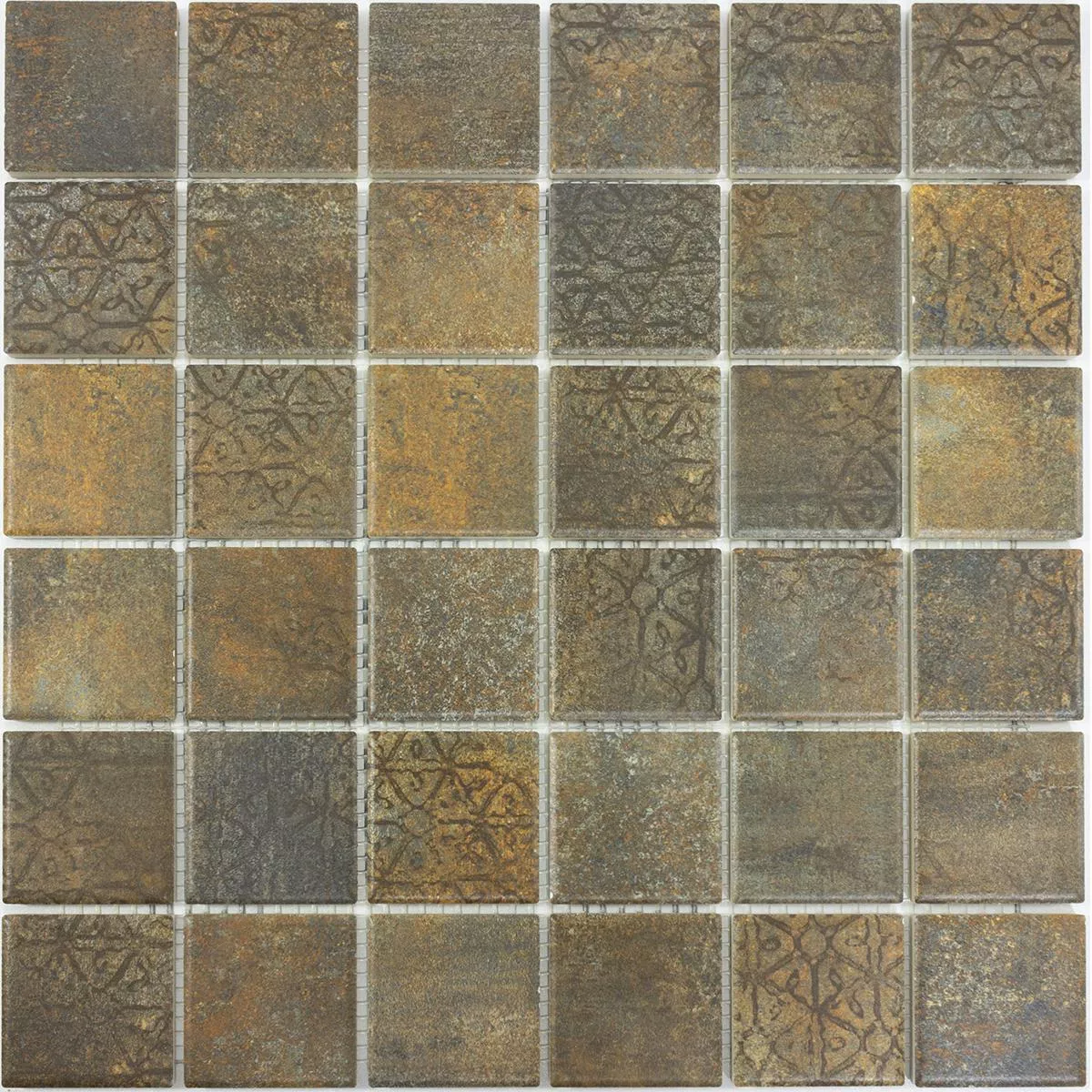 Dessa fyrkantiga mosaik-, vägg- och golvplattor med en stenstorlek på 47x47 mm och en tjocklek på 6,5 mm erbjuder en matt yta och en attraktiv retrolook i brunt. Varje matta mäter 29,7x29,7cm och täcker 0,088m² och är limmad på ett nät som är klart för installation.