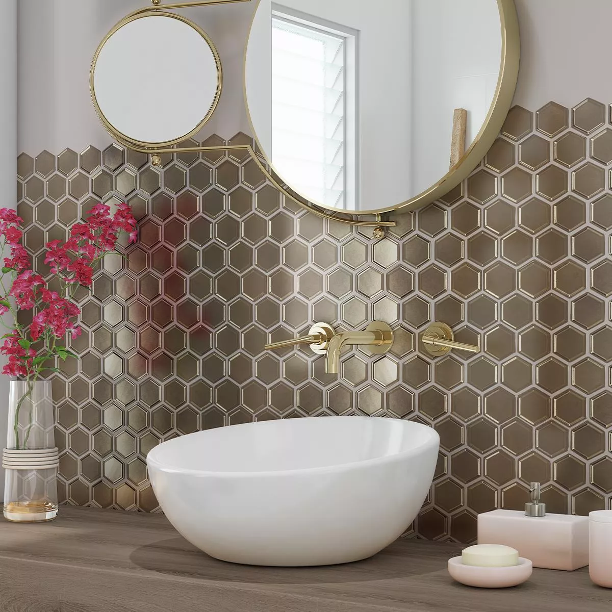 Keramik Mosaik Stellaris Hexagon Brons