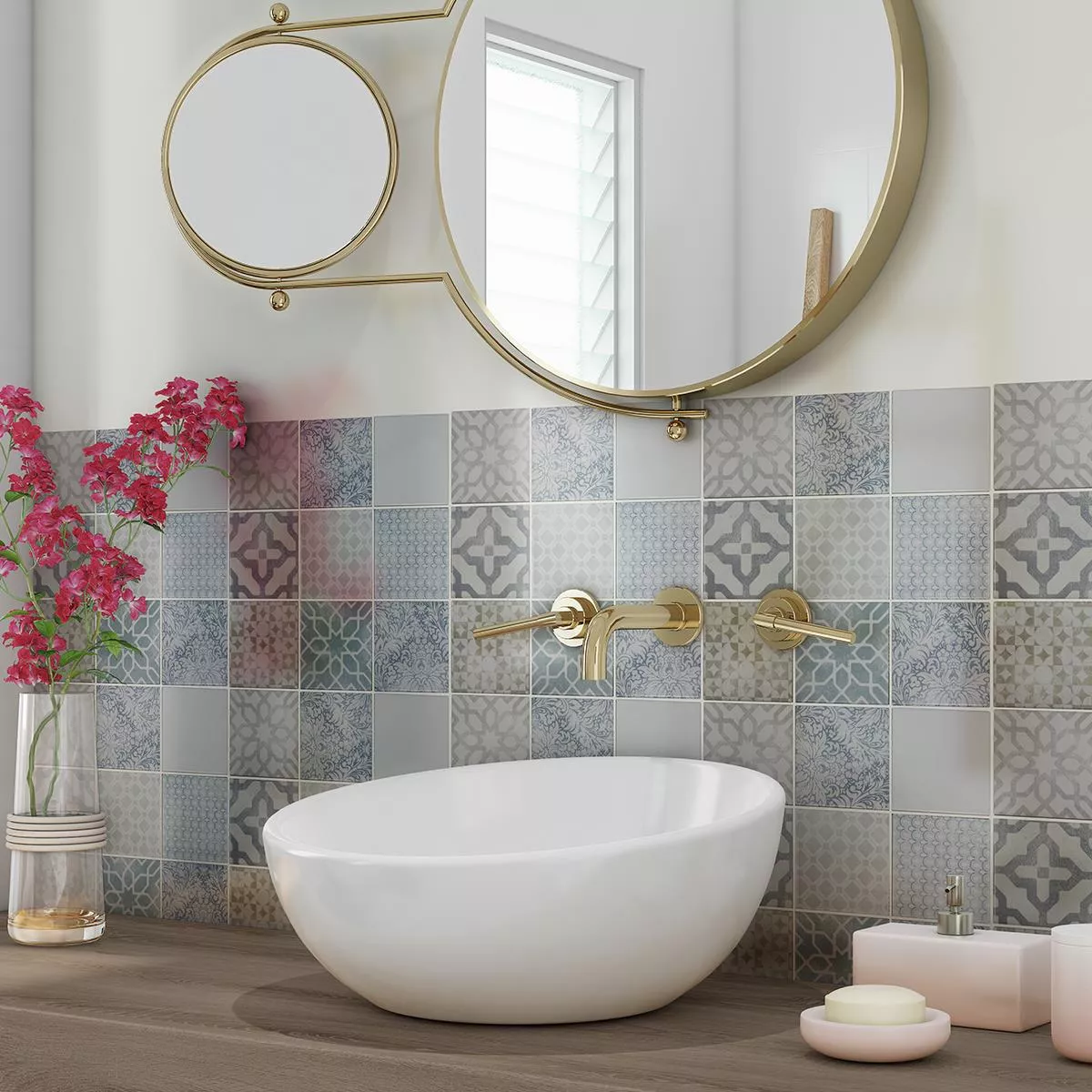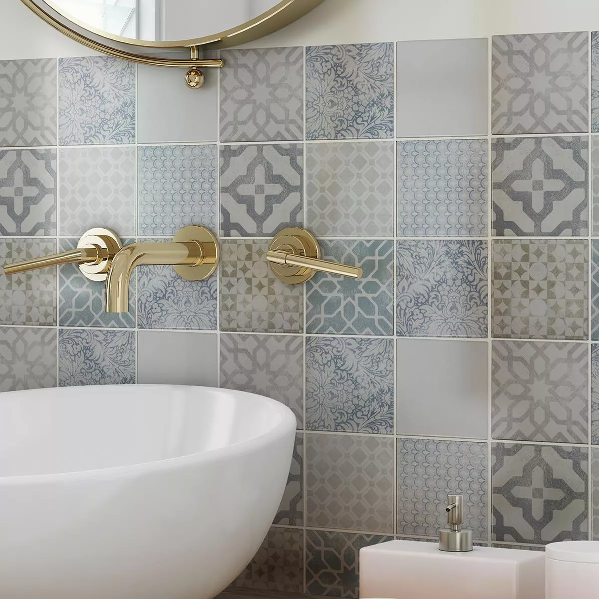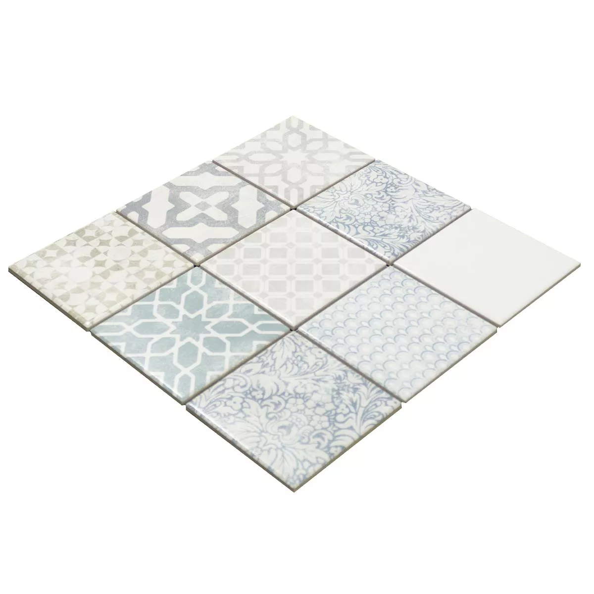 Vi erbjuder tidlös elegans med våra keramiska mosaikplattor Venezia Ornament. Dessa fyrkantiga golv-, vägg- och mosaikplattor med en stenstorlek på 97x97 mm ger ditt inomhus- och utomhusliv ett livfullt retroutseende. Den strukturerade och glänsande ytan samt de ljusa färgerna skapar en unik atmosfär.