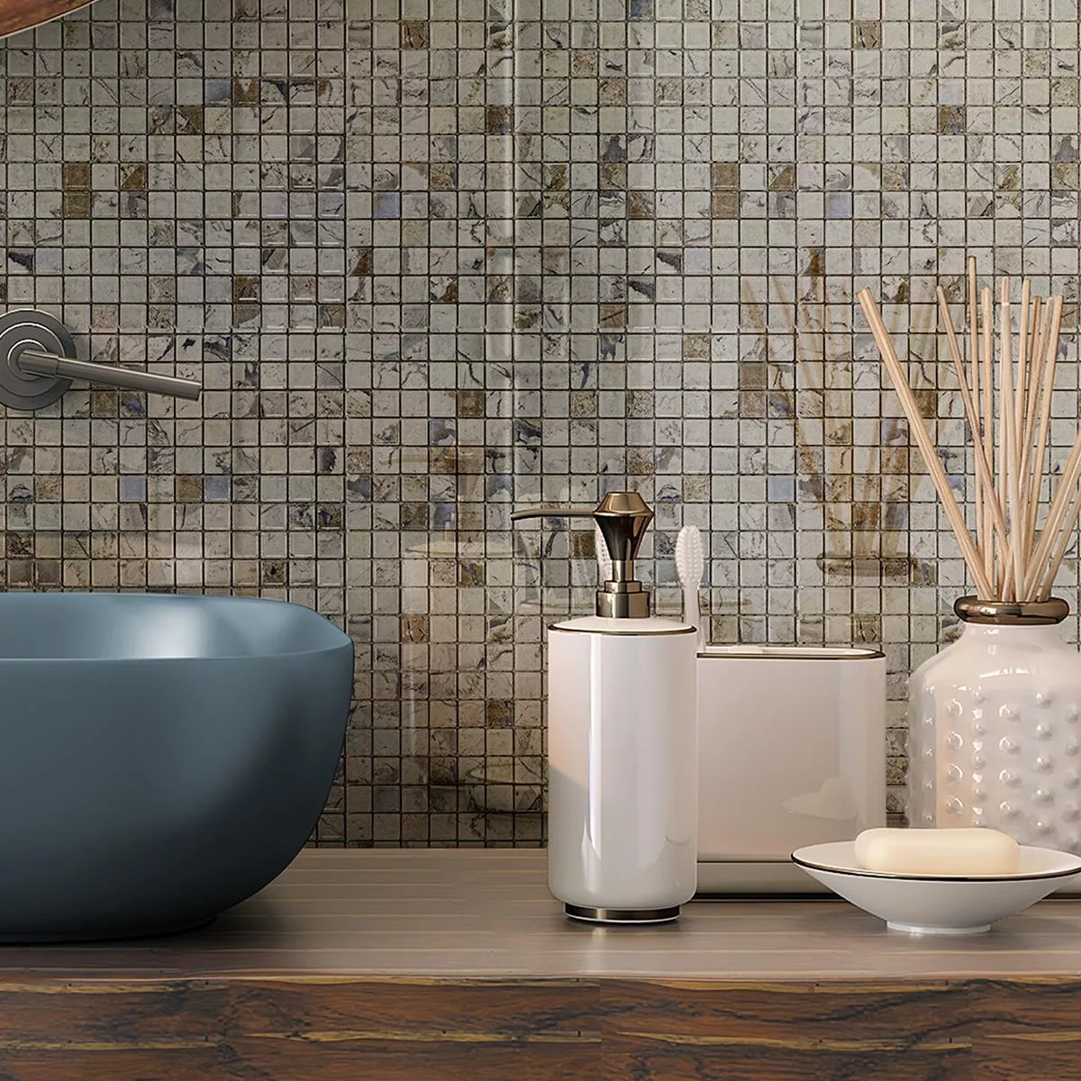 Elysium mosaikplatta i beige imponerar med sin stilfulla marmorlook och höga kvalitet. En matta täcker 0,099 m² och mäter 31,5 x 31,5 cm. De små mosaikstenarna som mäter 12 x 12 mm är redan limmade på ett nät färdigt för montering, vilket möjliggör enkel och exakt montering.