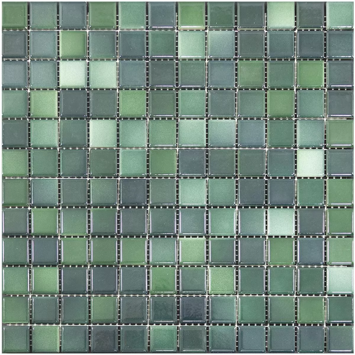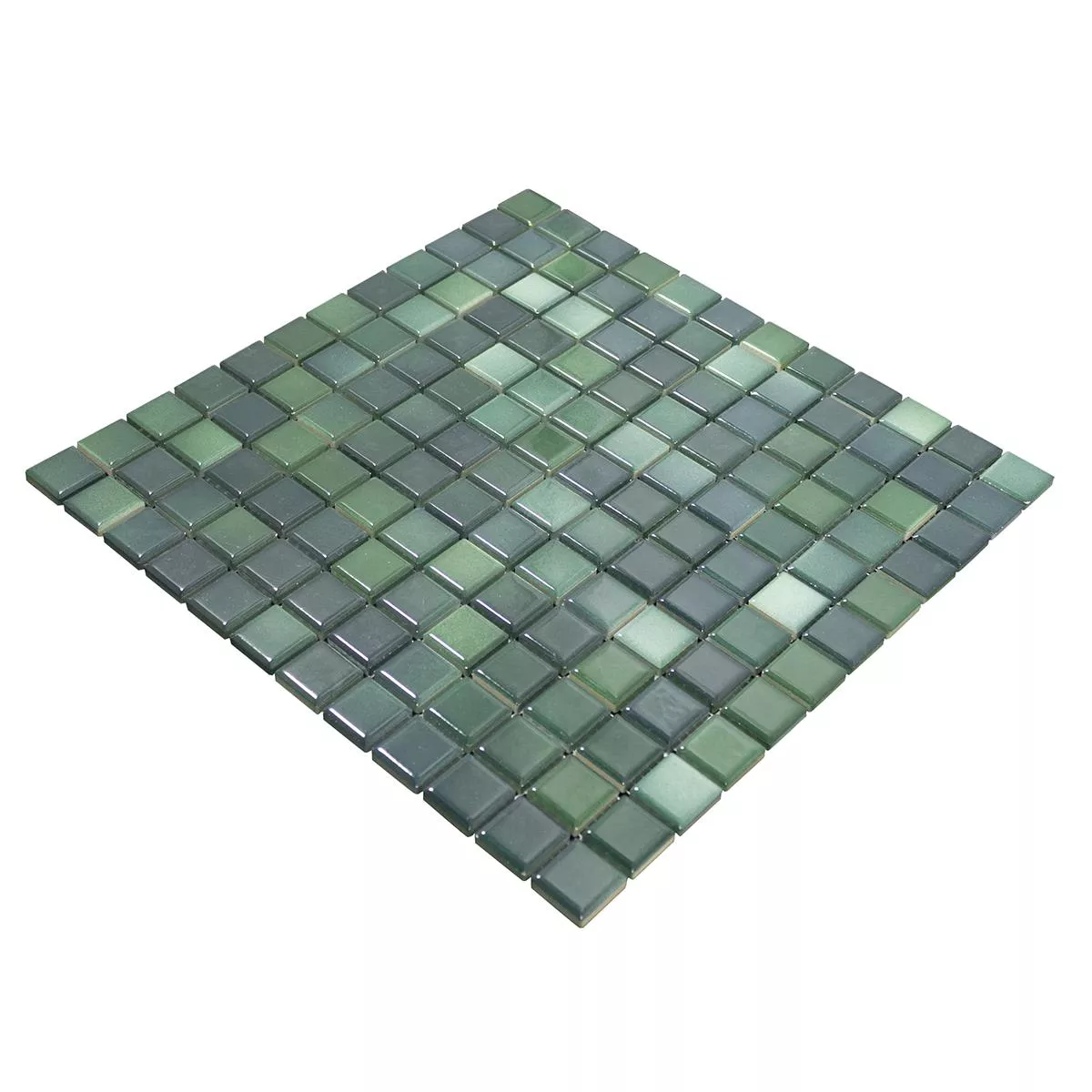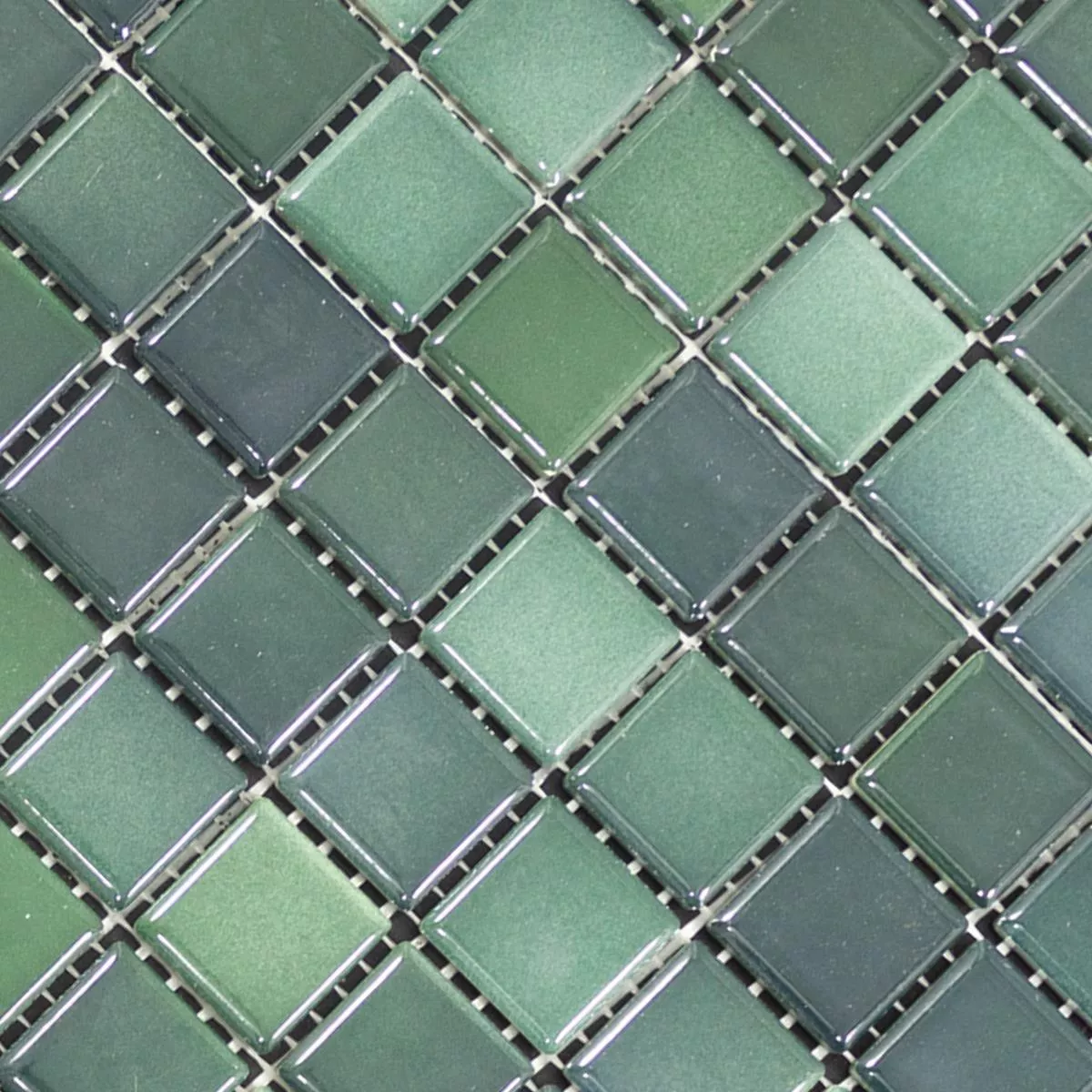 Gallerias keramiska mosaikplatta i en uppfriskande grön blandning ger dina rum en unik stil med sin eleganta metalllook och matta yta. Med stenstorleken 23 x 23 mm och kakelmattan på 29,7 x 29,7 cm, som redan är limmad på ett nät färdigt för montering, blir montering på både väggar och golv en enkel och exakt uppgift.