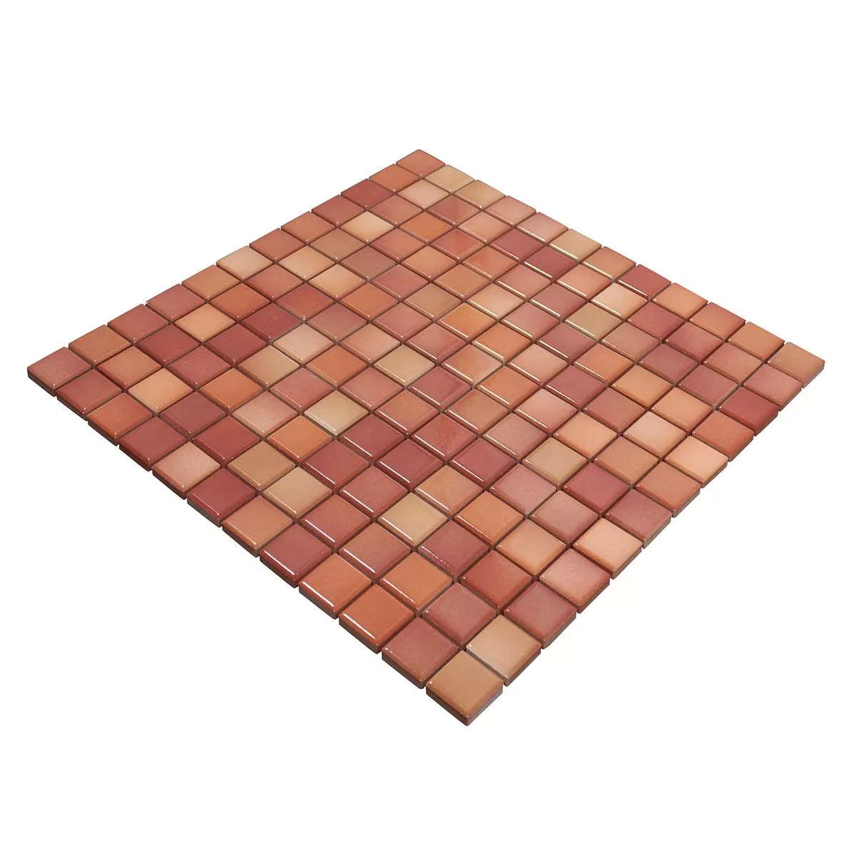 Gallerias keramiska mosaikplatta i en livlig röd blandning sätter imponerande accenter med sin iögonfallande metalllook och matta yta. Kakelplattan finns i en praktisk matta som mäter 29,7 x 29,7 cm, som redan är limmad på ett nät färdigt för montering. Med en stenstorlek på 23 x 23 mm och en tjocklek på 6,5 mm kan kaklet läggas enkelt och exakt på både väggar och golv.