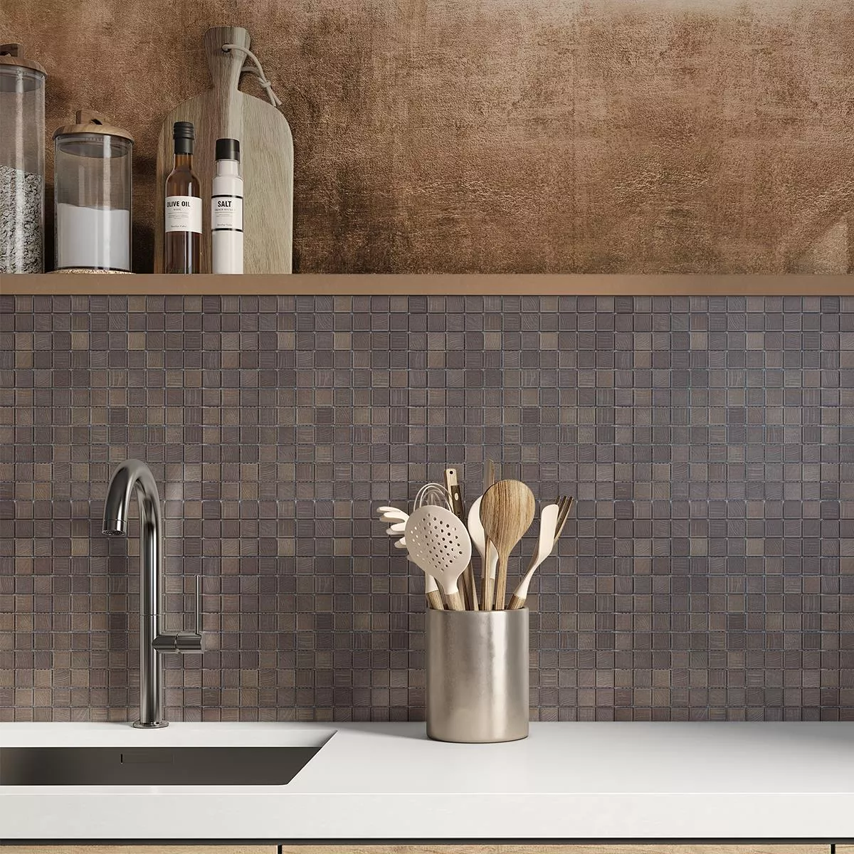 Luminaras keramiska mosaikplattor i elegant brunt kombinerar naturlig elegans med modern funktionalitet. Tack vare sin autentiska trälook och matta yta ger den en varm och mysig atmosfär till alla rumskoncept. De enskilda mosaikstenarna har storleken 23 x 23 mm och är limmade på ett nät på en 29,7 x 29,7 cm matta, färdiga för montering, vilket gör monteringen enkel och exakt.