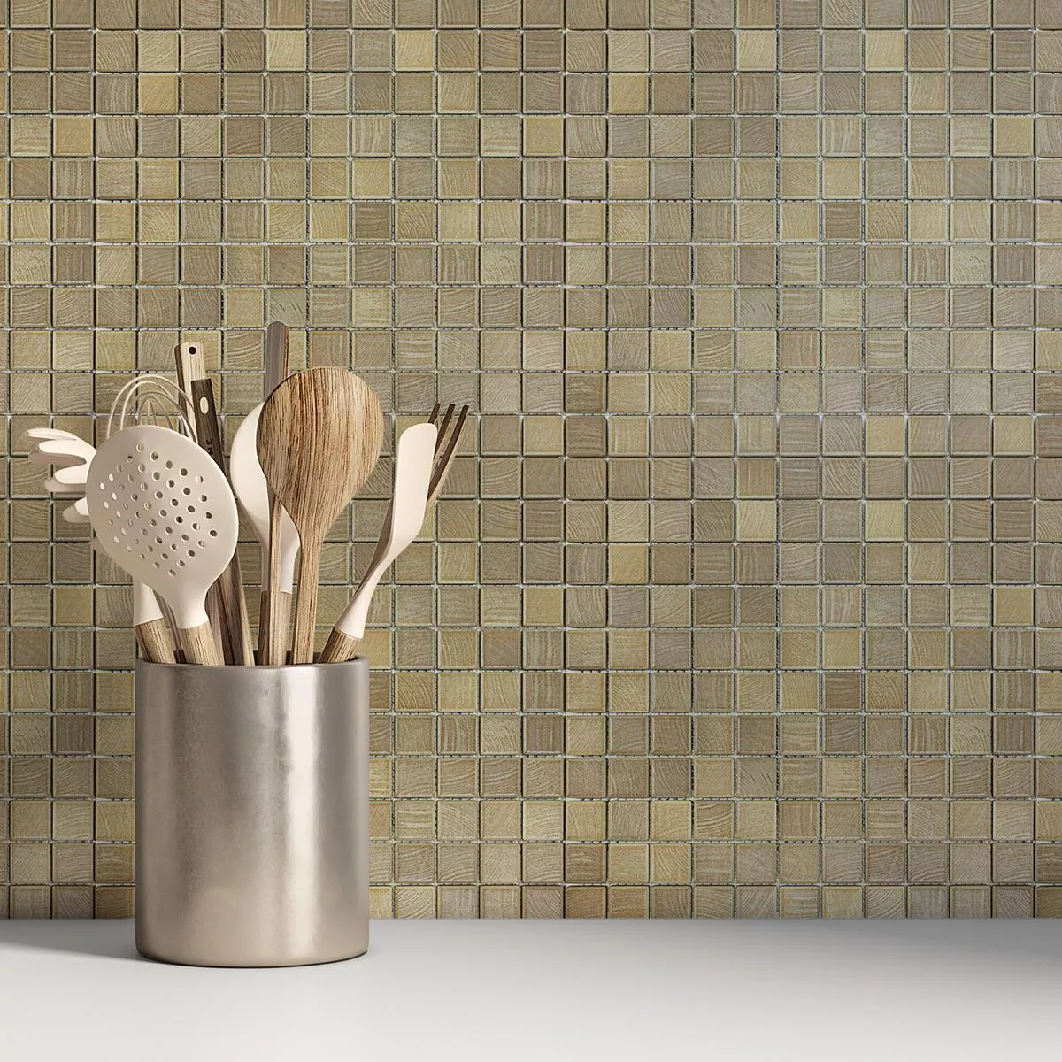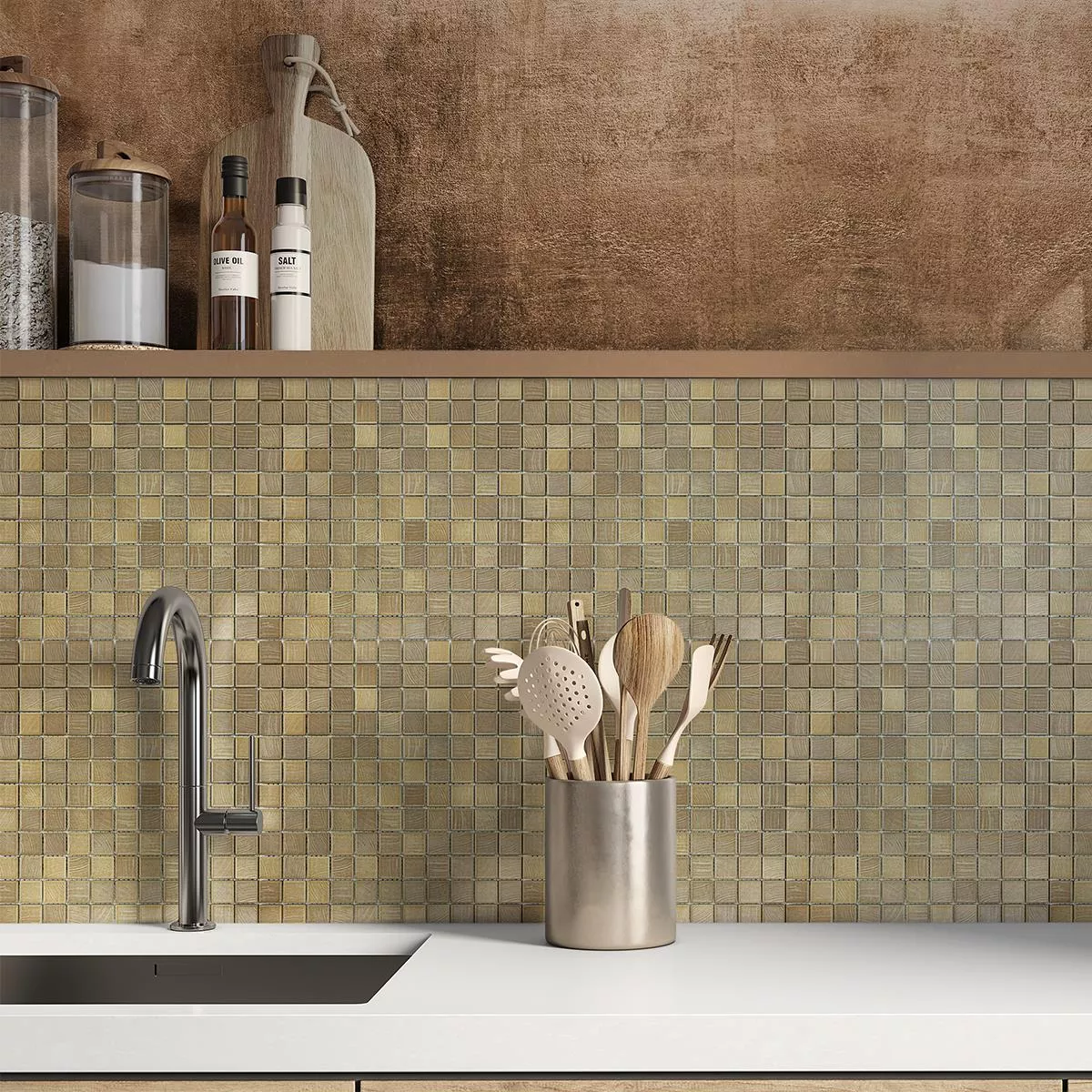 Luminaras keramiska mosaikplattor i mjukt ljusbrunt ger en naturlig och inbjudande atmosfär till alla rum. Med sin matta yta och trälook kombinerar den snygg design med funktionella fördelar. Mosaikstenarna mäter 23 x 23 mm och är limmade i ett nät på en matta som mäter 29,7 x 29,7 cm, redo för montering, vilket gör monteringen snabb och enkel.