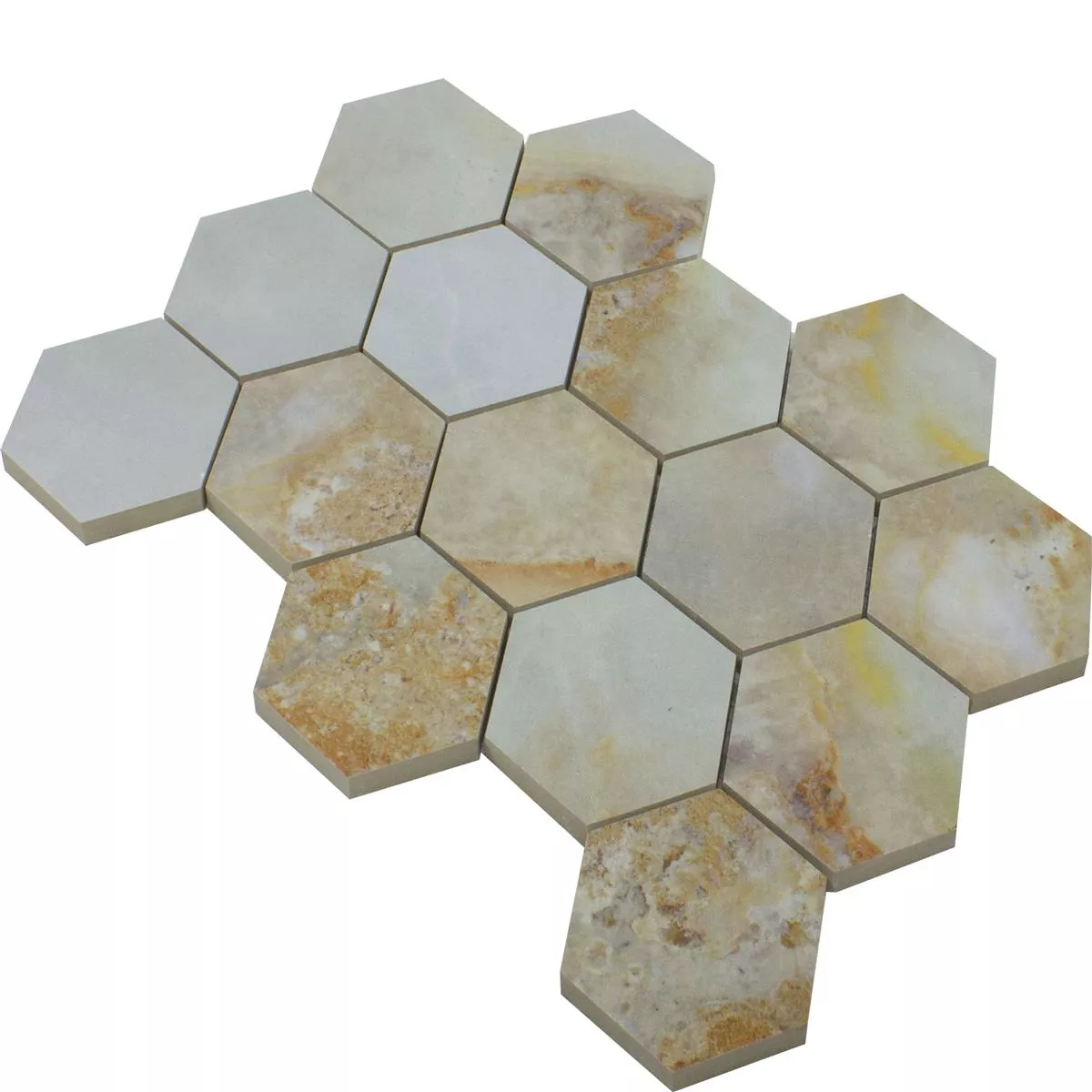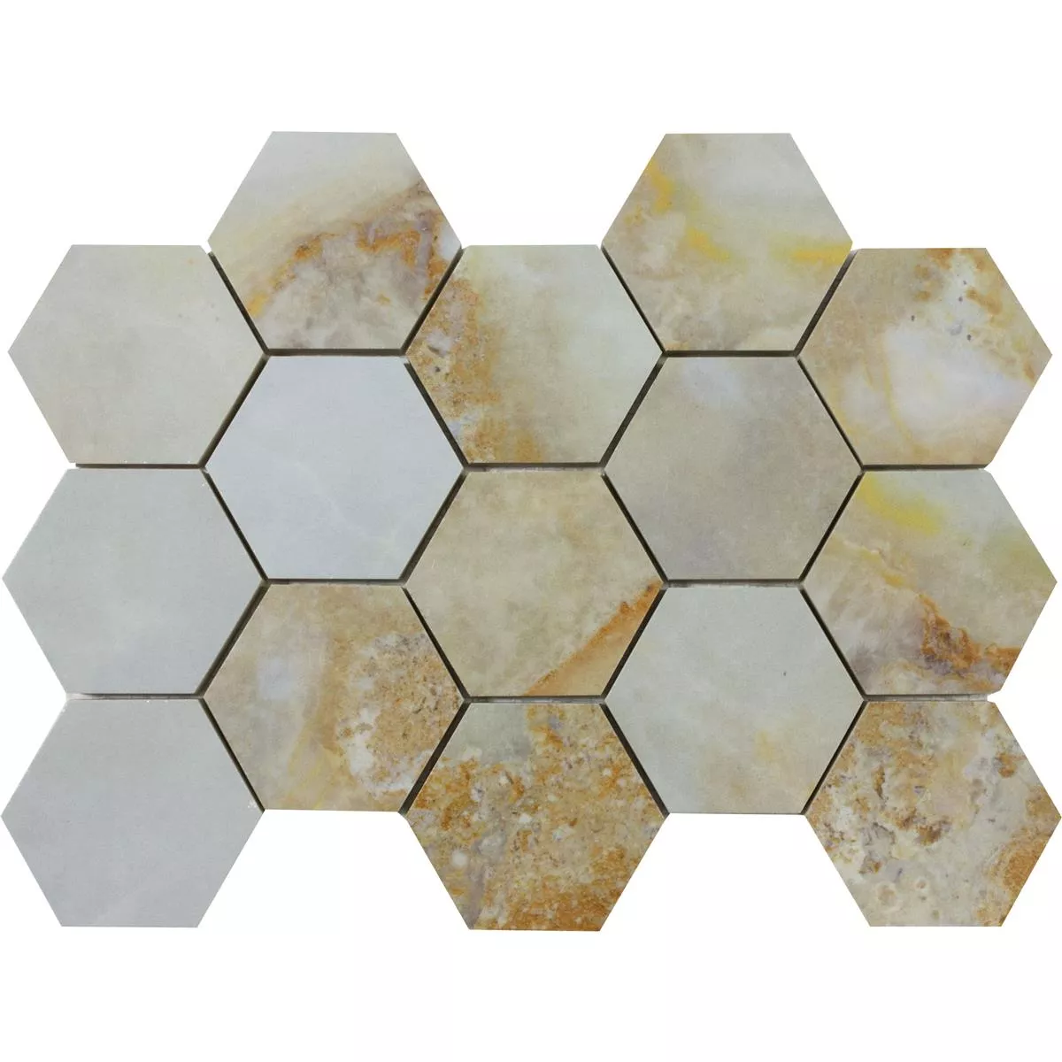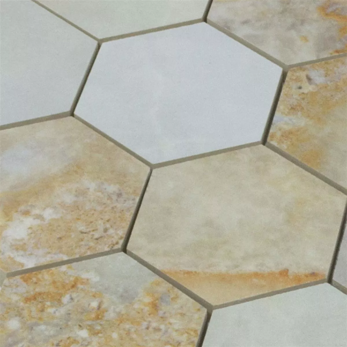 Keramikmosaik Plattor Naftalin Hexagon Brun Vit