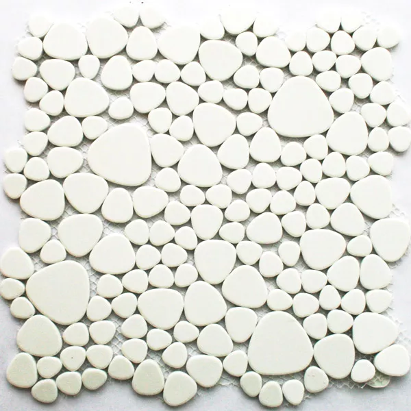 Keramikmosaik Plattor Småsten Optik Moorland Vit Glänsande