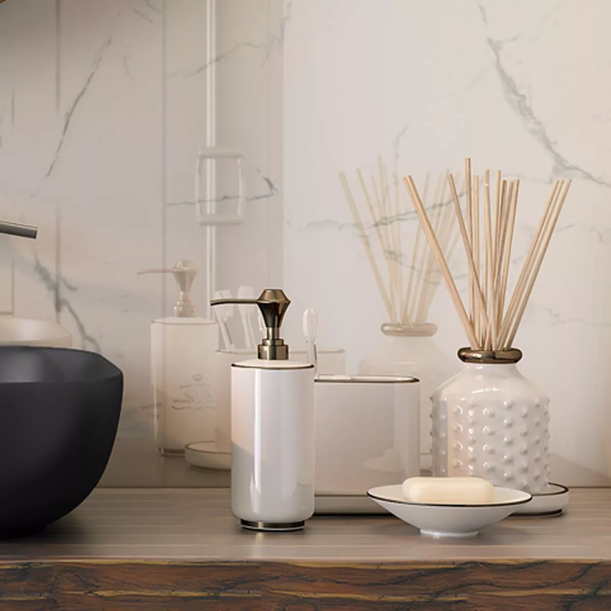 - Utseende: Marmor- och naturstensutseende av hög kvalitet