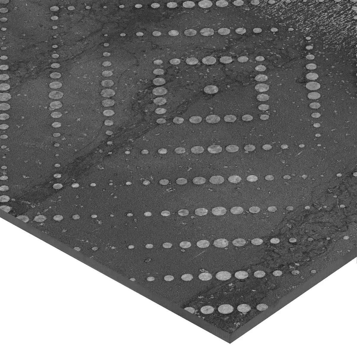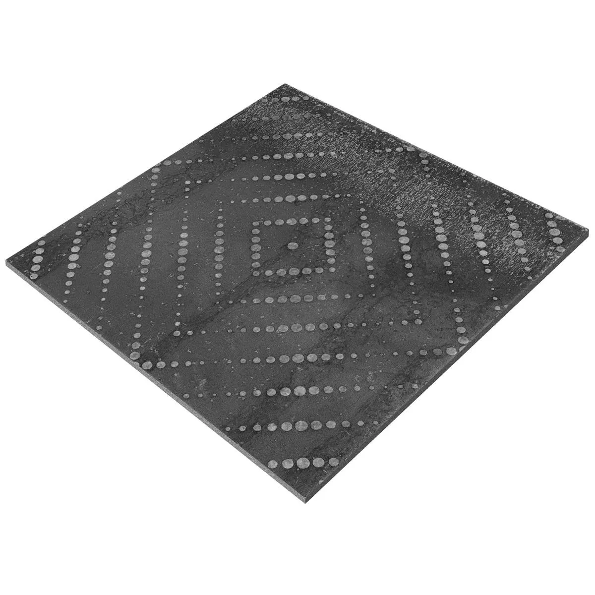 Golvplattorna "Chicago metal look antracit R9 - 18,5x18,5cm Pattern 3" kombinerar modern stil med funktionella egenskaper. Här är en kort beskrivning av produkten: