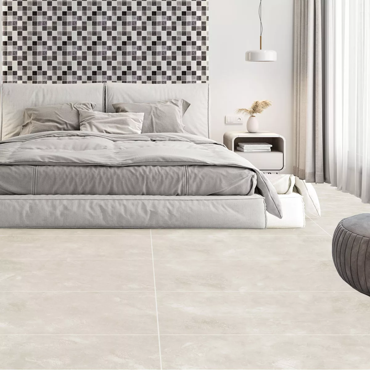 Cortinas golvplattor i kräm kombinerar en modern betonglook med tidlös elegans. I det generösa formatet 60x120cm ger de varje rum ett rymligt och högkvalitativt utseende.