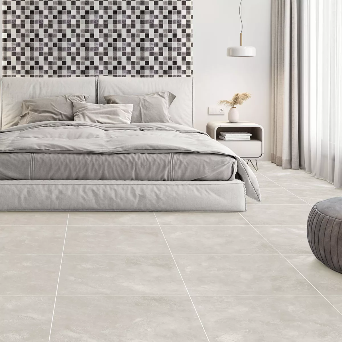 Cortina-plattor kombinerar betongens robusta estetik med värmen från en krämfärgad ton för att skapa en välkomnande atmosfär i alla rum. Dess matta yta skapar en subtil, modern look, medan det generösa formatet 60x60 cm förmedlar en känsla av rymd.