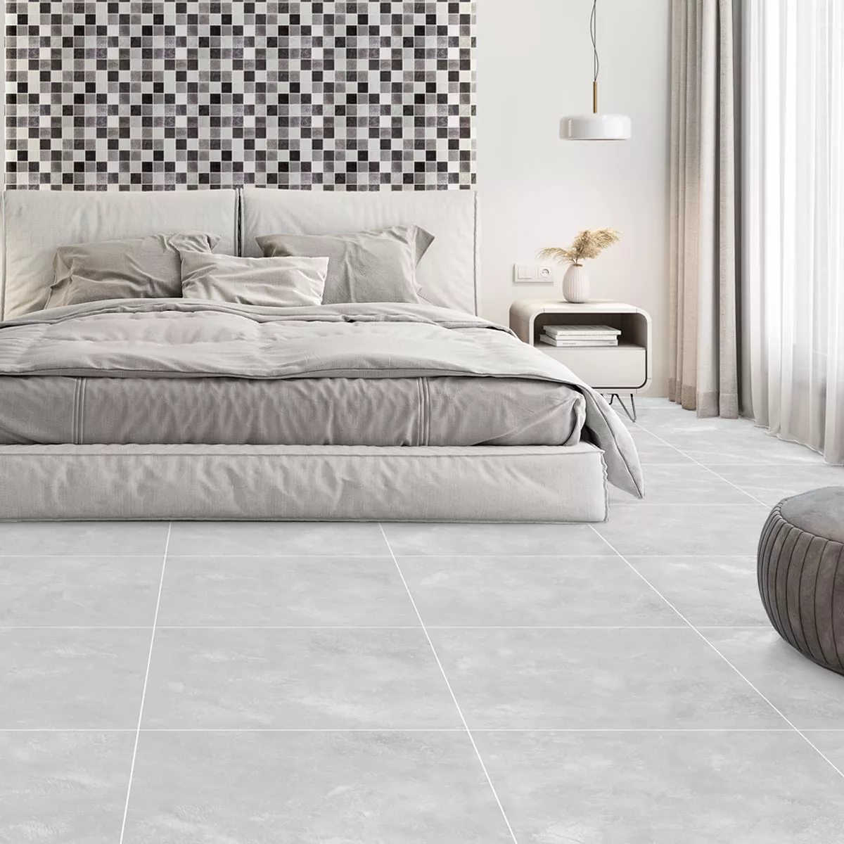 Ge ditt hem en modern touch med våra Cortina golvplattor i en matt ljusgrå look. Dessa mångsidiga plattor i ett kvadratiskt format på 60x60cm erbjuder en stilren betonglook som passar harmoniskt in i olika vardagsrum.