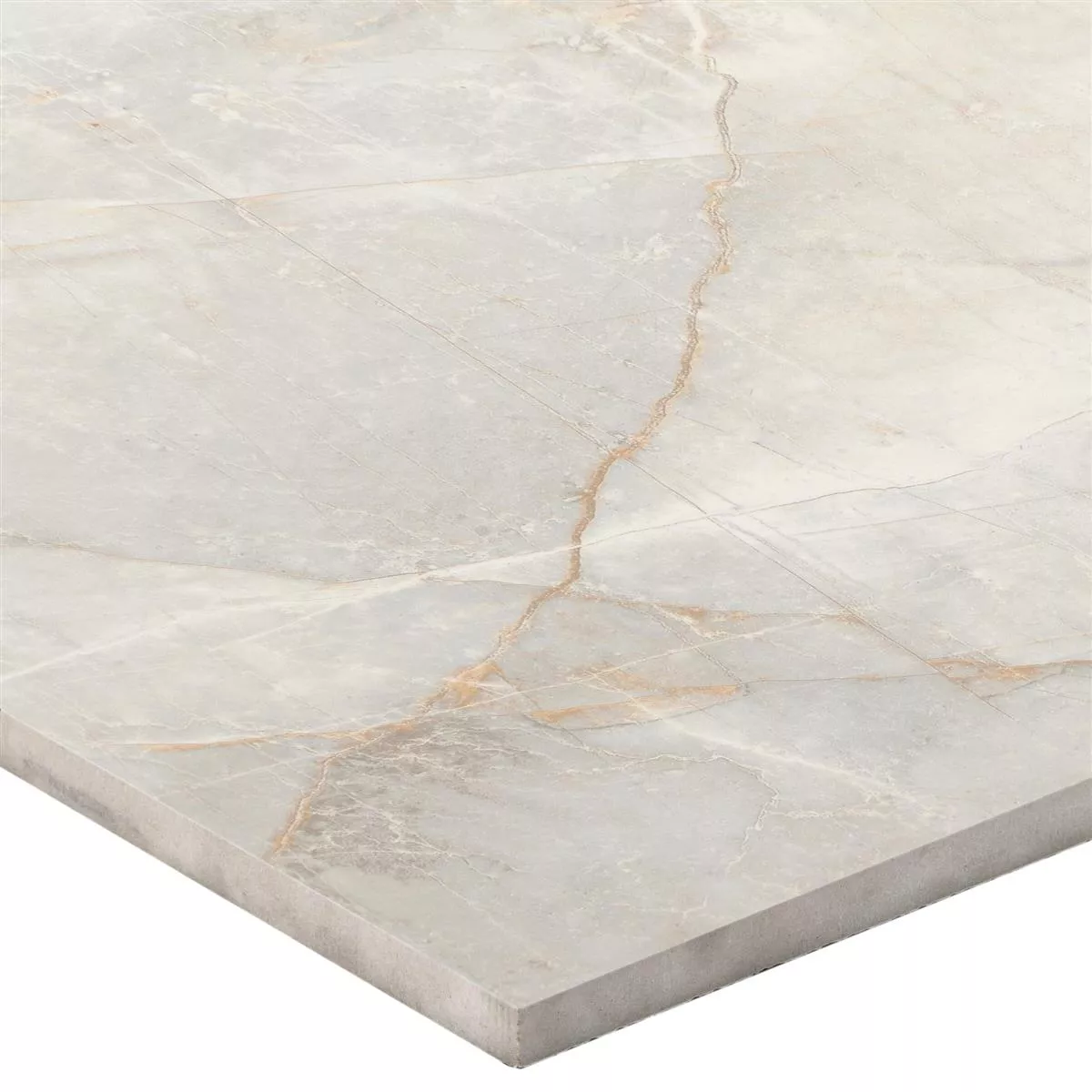 Golvkakel Novinger i ljusgrått med vacker naturstenslook. Golvplattan har en polerad yta och har ett kvadratiskt kakelformat.