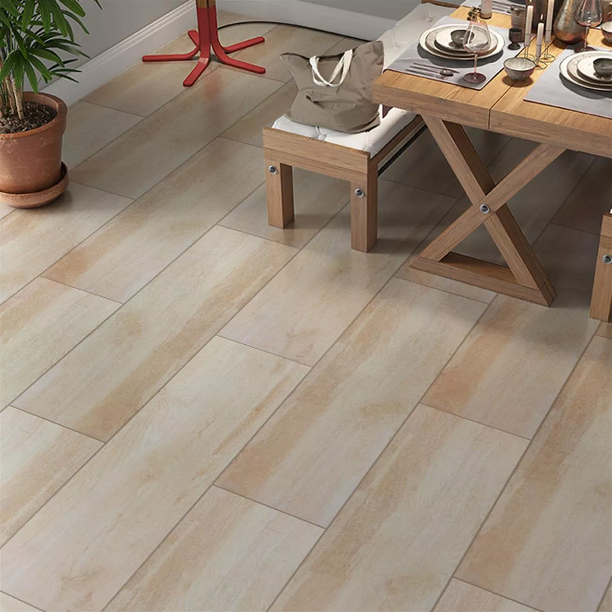Med sin varma beige ton och trälook skapar dessa plattor en inbjudande atmosfär och passar sömlöst in i olika inredningsstilar. Kombinationen av estetisk design och praktiska egenskaper gör Caledonia-kakel till ett mångsidigt och stilrent val för din inredning.