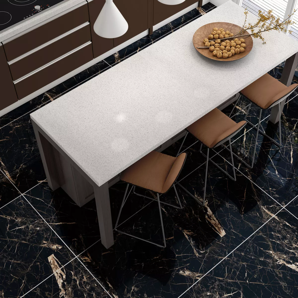 Elegant Trento golvplattor i marmor ser svart guld ut