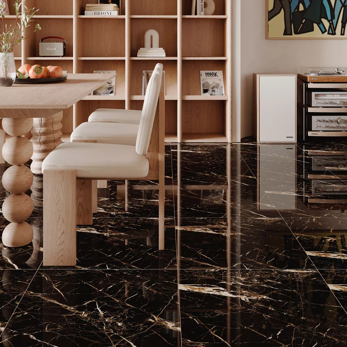 Lyxiga golvplattor Trento i marmorlook - svart guld, 60x60cm