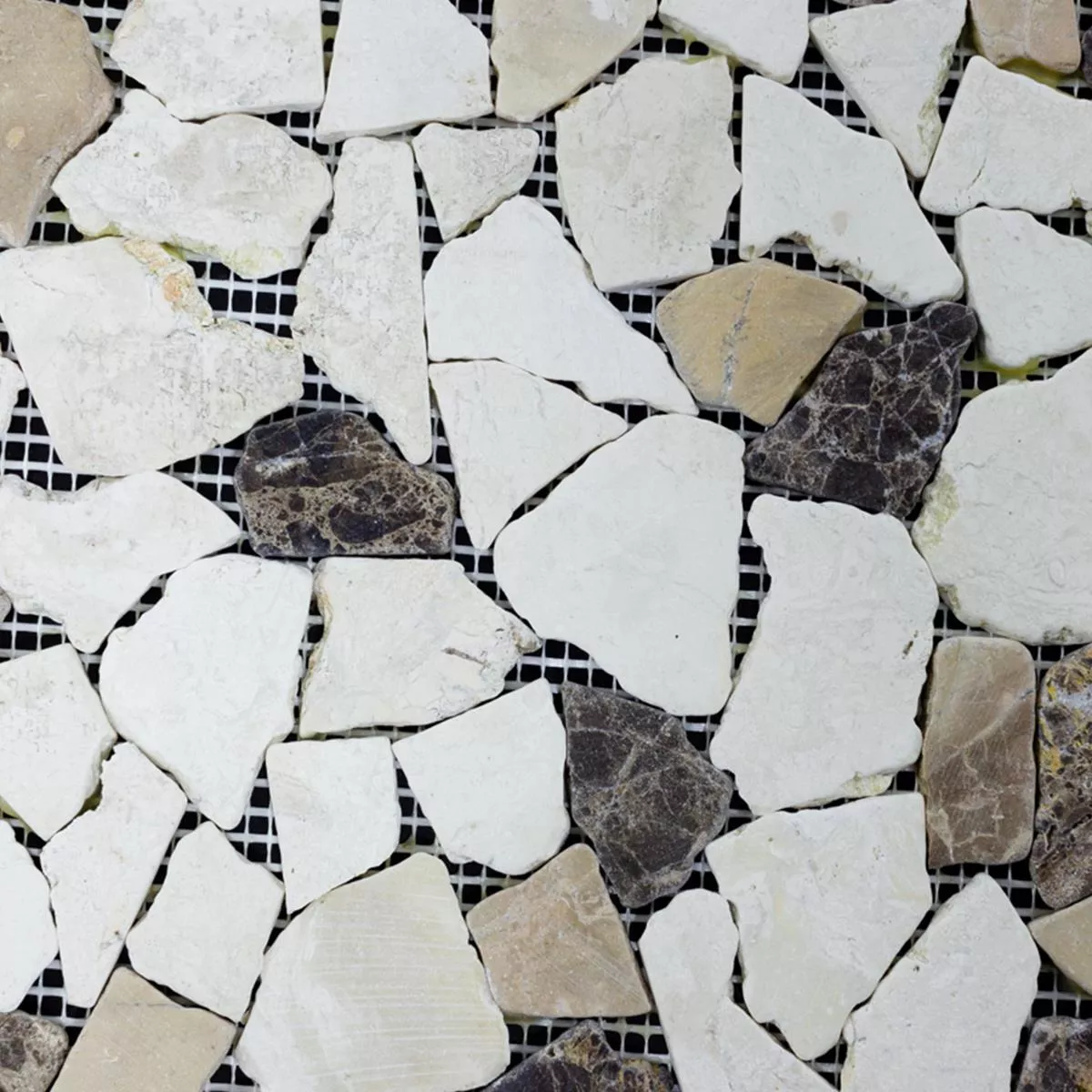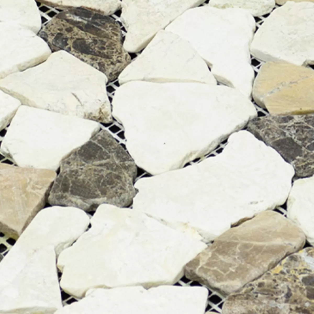 Fördjupa dig i den tidlösa skönheten med våra krossade marmormosaikplattor Dolcevista Brown White. Dessa mosaik-, vägg- och golvplattor med varierande stenstorlekar från 15-69 mm ger en varm elegans till dina inomhus- och utomhusområden. Den matta ytan och en fogbredd på 0-15 mm understryker marmorns naturliga charm.