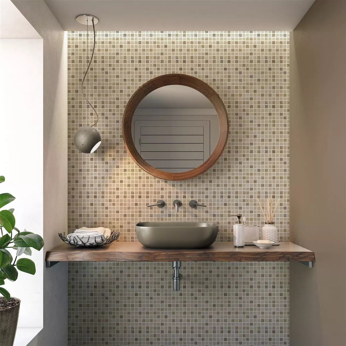 Lorentes Light Brown Mix Marble Natural Stone Mosaic Plates är ett mångsidigt och elegant kakelalternativ för inomhusbruk. De är gjorda av marmor och har en vacker färgkombination av beige, kräm och ljusbrunt. Varje platta är 23x23 mm stor och har en matt finish. Plattorna är arrangerade i en mattstorlek på 30,5x30,5cm, med en matta som täcker en yta på 0,093m². Med en tjocklek på 7 mm är de robusta och hållbara.