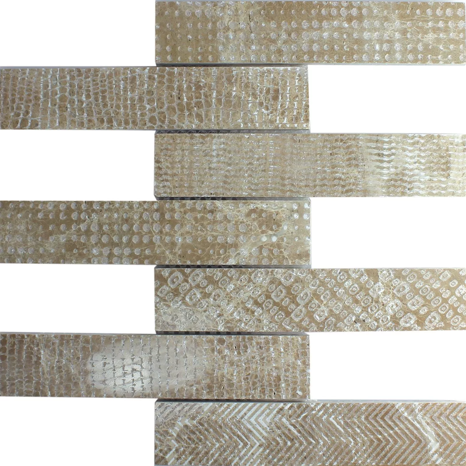 Marmor natursten rand mosaik kakel Grover är gjord av natursten marmor. Mosaikplattan är en speciell höjdpunkt på grund av det stora antalet olika ytmönster som kan kombineras. Grover naturstensplattor finns till exempel med prickigt, randigt, taggigt eller vågigt mönster. Därför lämpar sig Grover plattan väl att kombinera med andra enkla kakelplattor och förhöjer ditt rum dekorativt. Grover mosaikplattor gör att ditt vardagsrum ser väldigt intressant och extremt varierat ut.