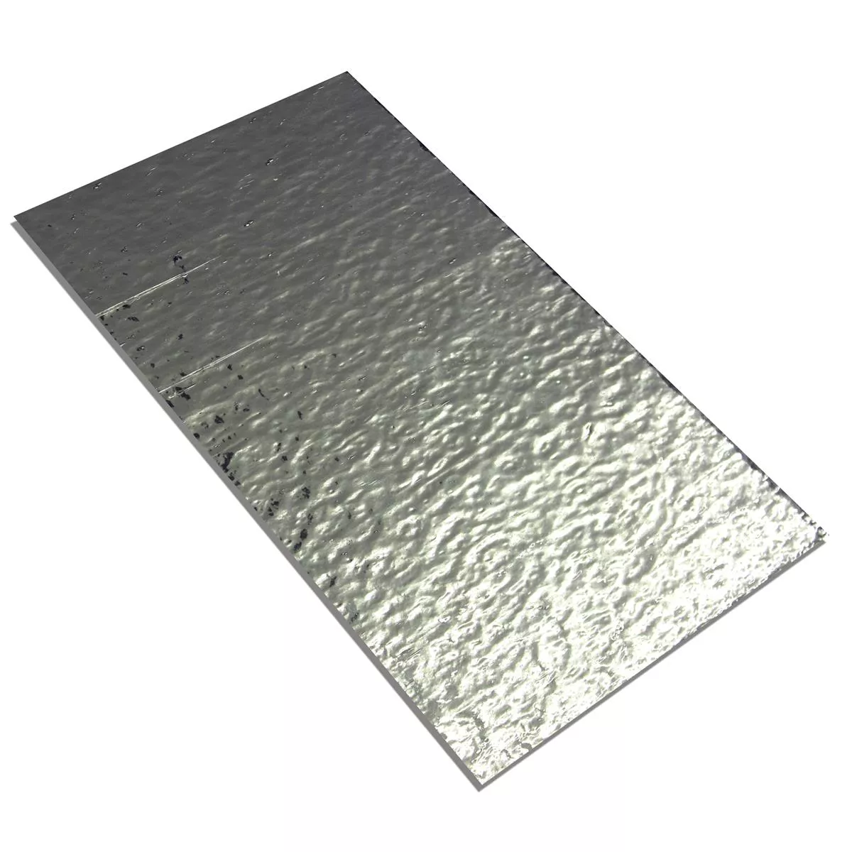Metro Glasplattor Subway Silver Mirage Corrugated 7,5x15cm