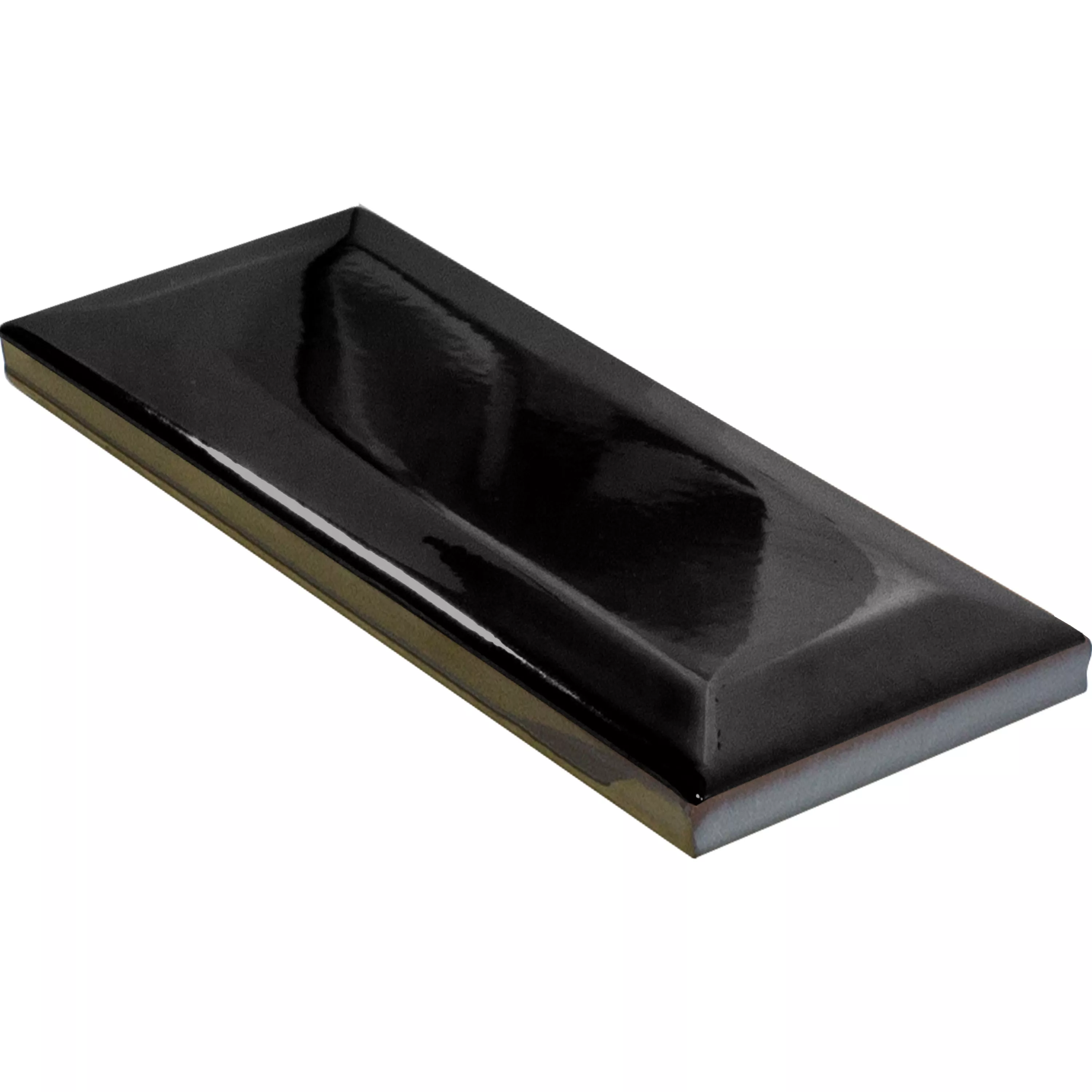 Metro Kakel Heliopolis Med Fasett Svart 7,5x15cm