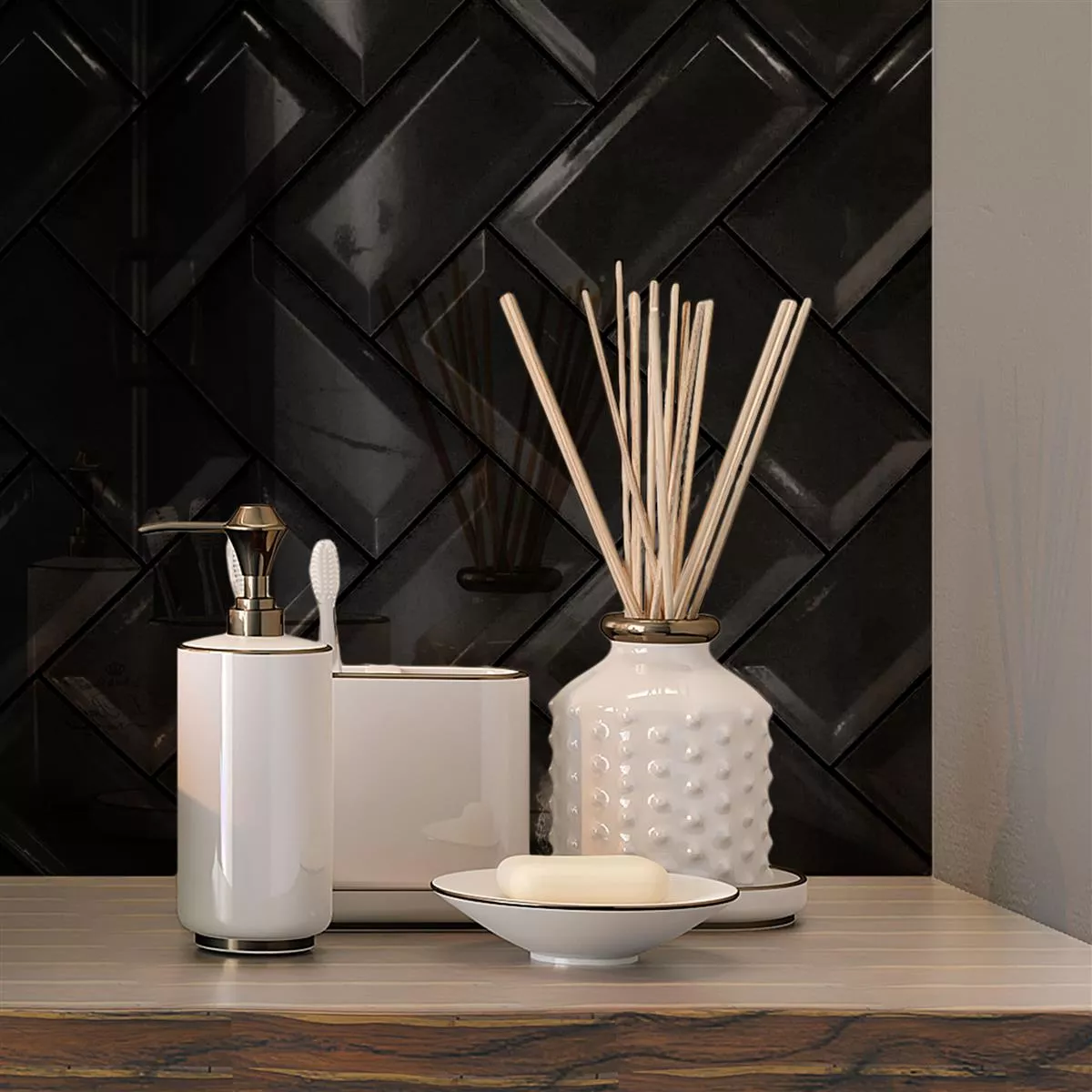 Med en vikt på 15,5 kg erbjuder de en robust lösning för inomhusutrymmen, kök, badrum, duschar och vardagsrum. Det facetterade utseendet ger plattorna en slående metroestetik. Perfekt för våtutrymmen och mångsidig inredning, dessa väggplattor ger tidlös klass och modern stil till ditt hem.