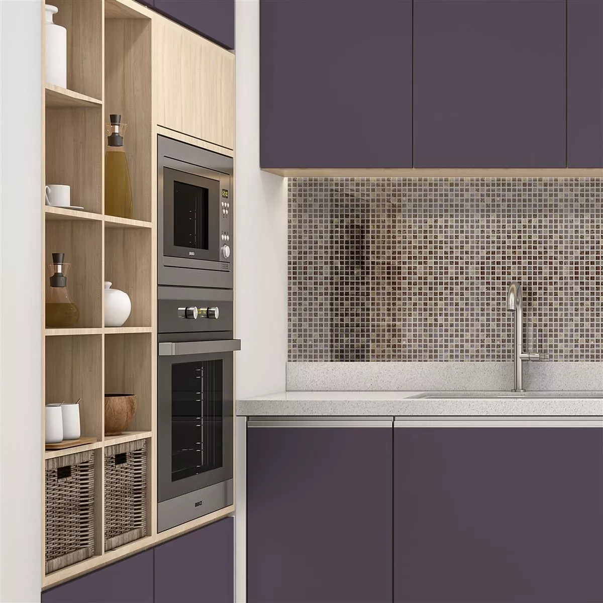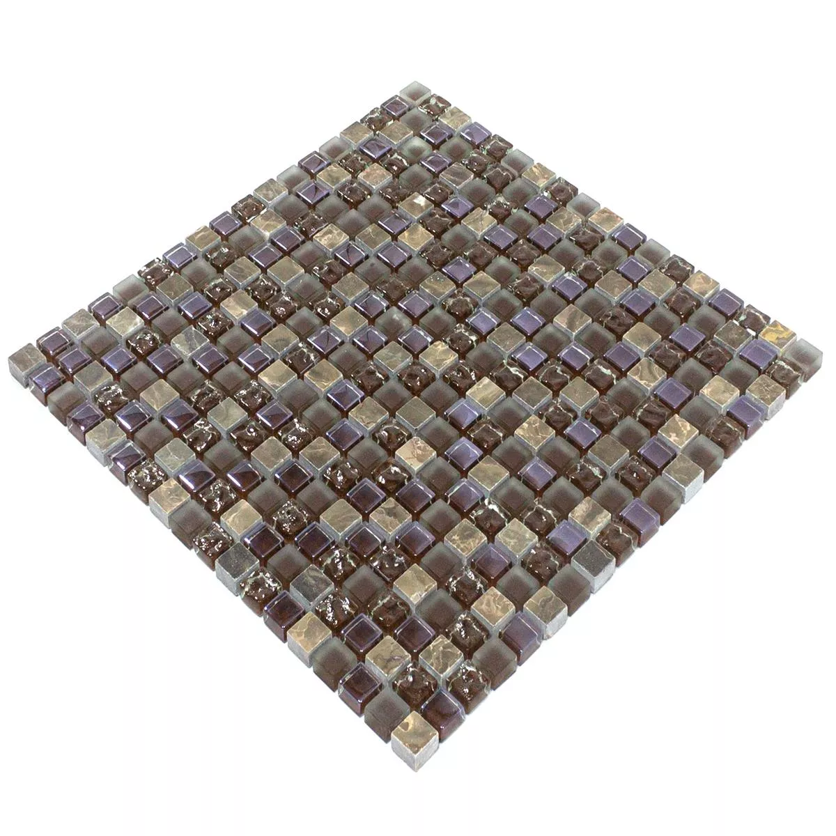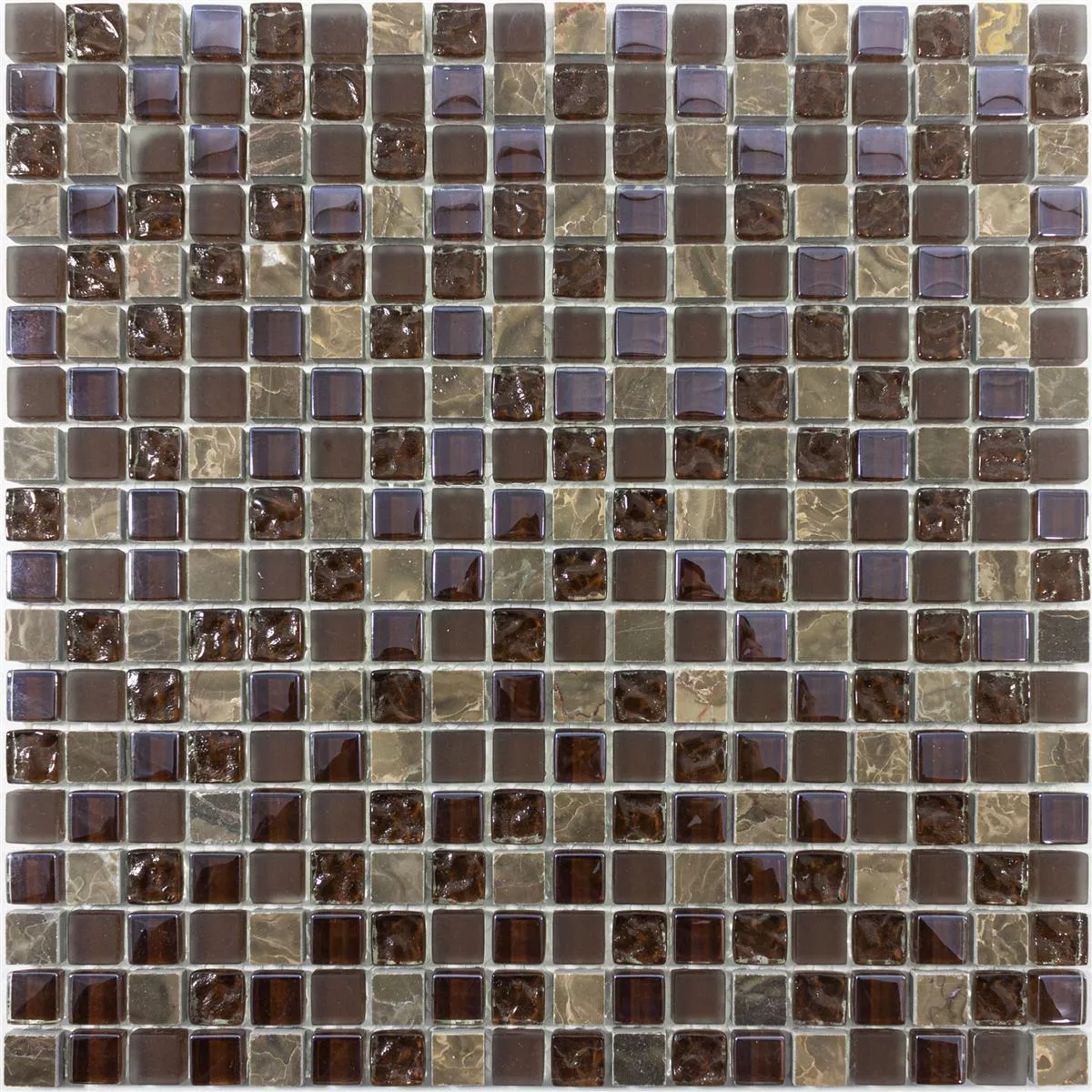 Estrella mosaikplatta i brunt kombinerar natursten, porslinsstengods och glas för att skapa en attraktiv blandning av material. Denna väggplatta erbjuder ett marmorliknande utseende och ger en elegant touch till alla rum.