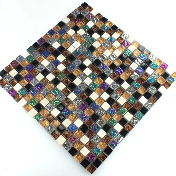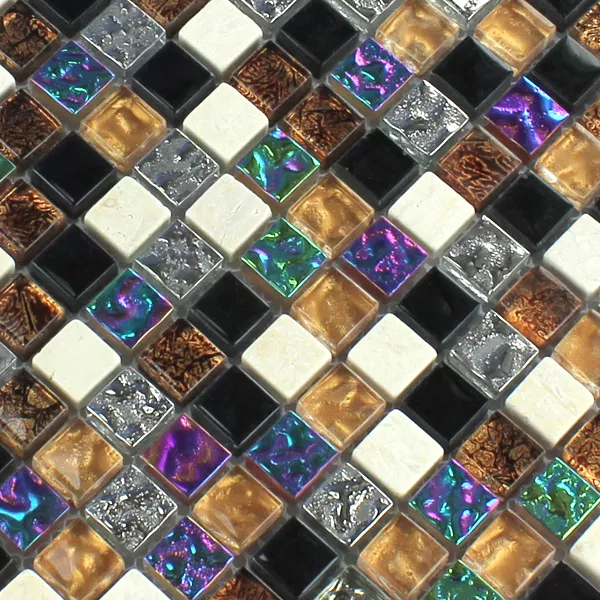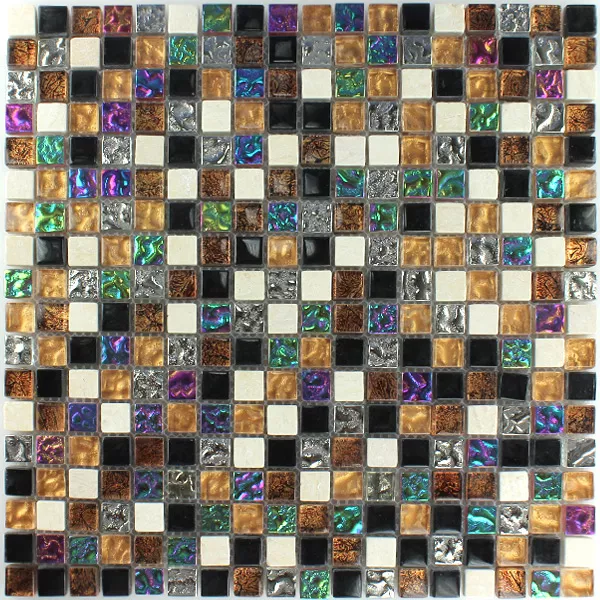 Mosaik Glas Marmor Färgrik Mix 15x15x8mm