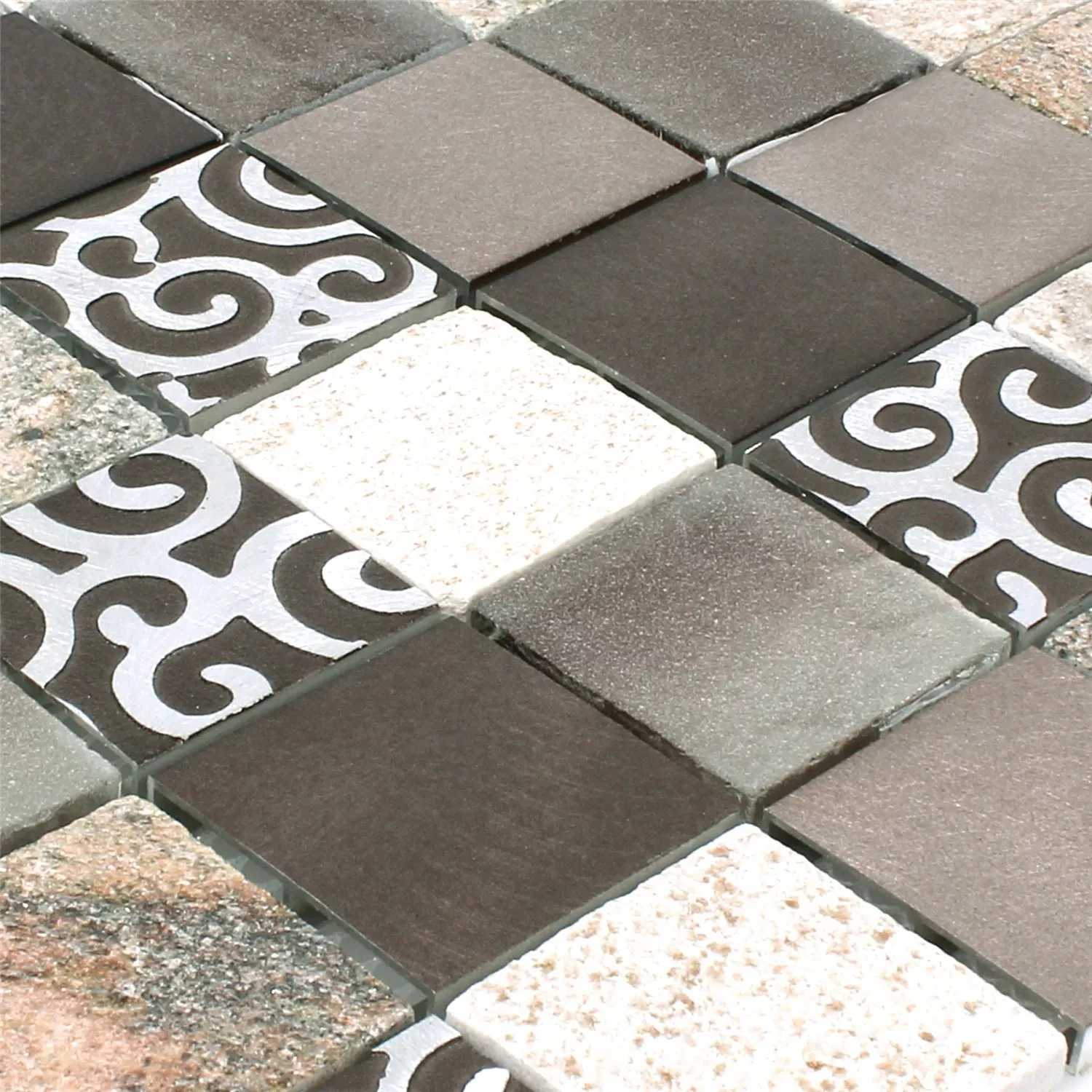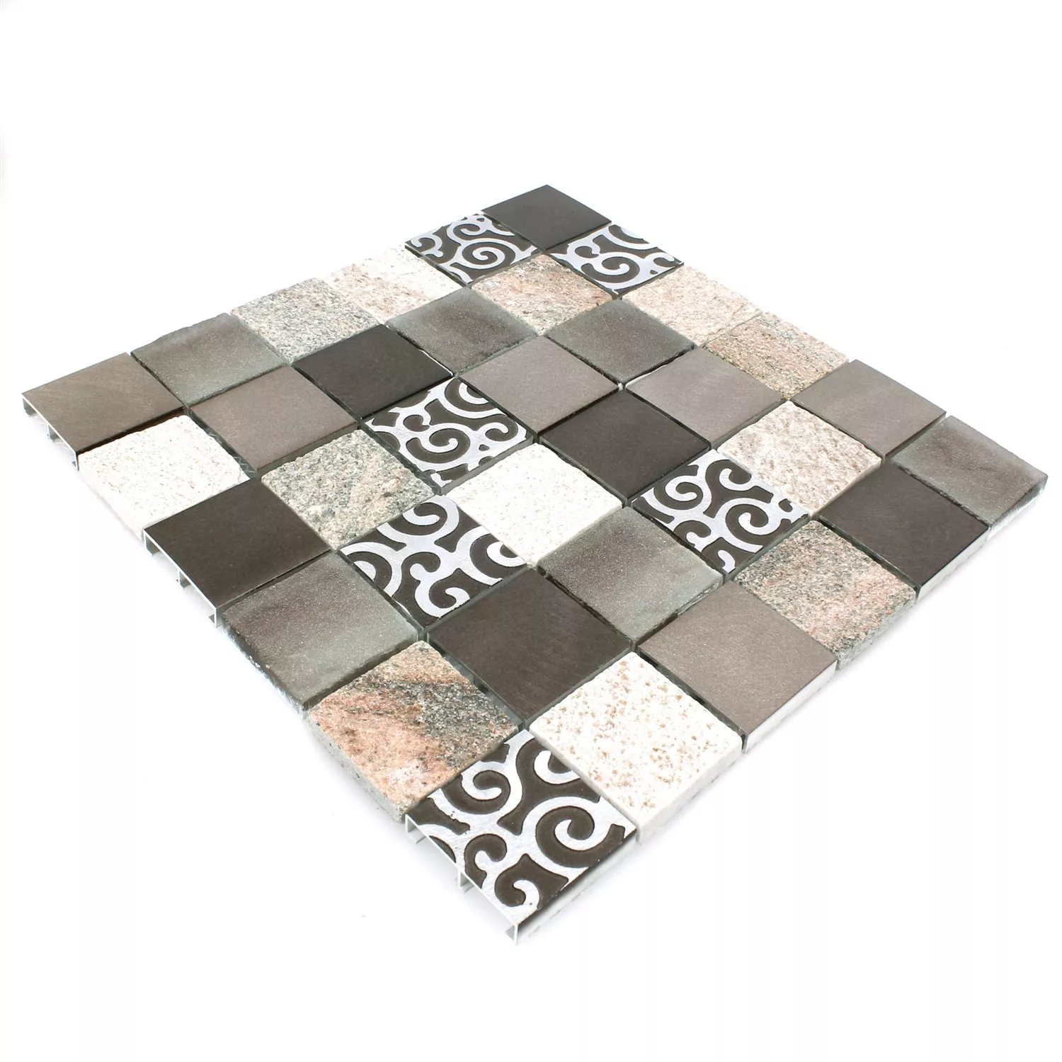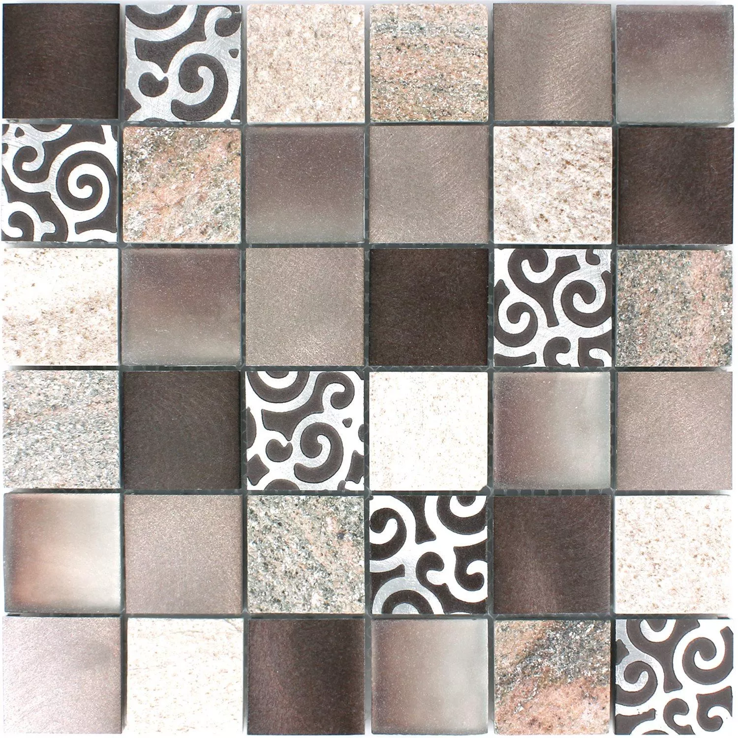Mosaik Glas Natursten Aluminium Valdivia Brun