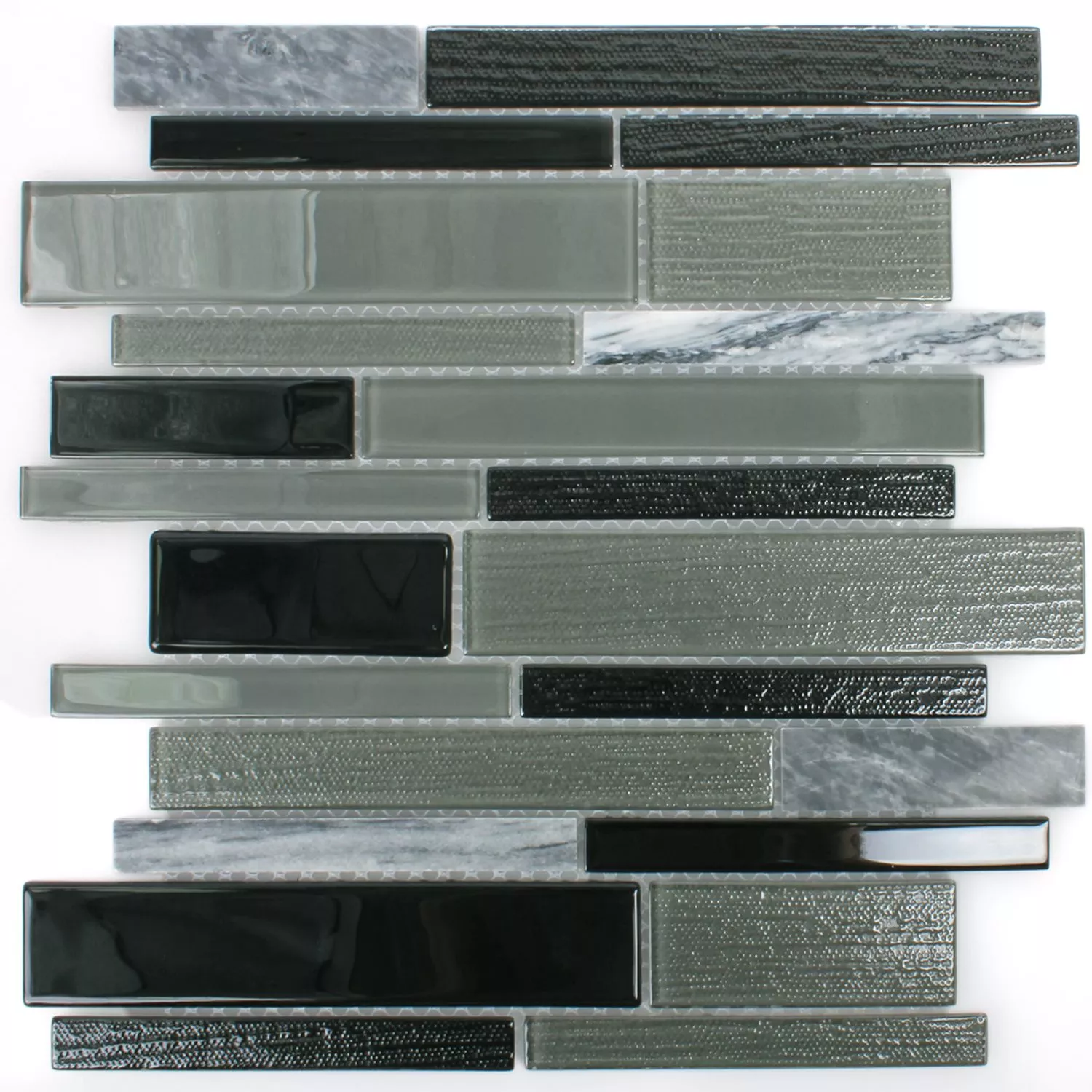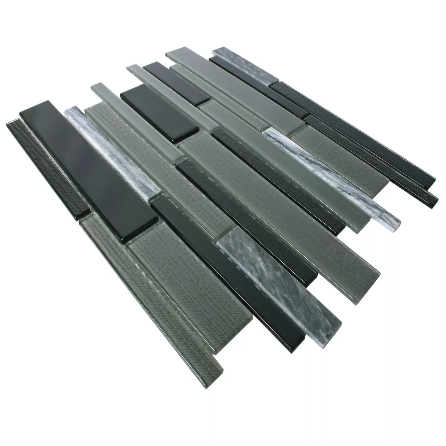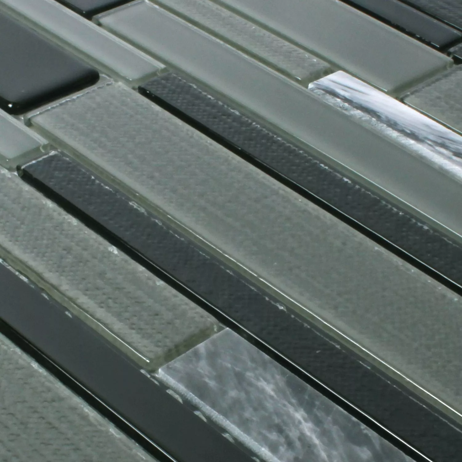 Mosaikplattorna glas natursten Kalamos svartgrå gör varje rum där de ligger till en mycket speciell oas. Dessa plattor har tillhandahållits som en glasmosaik med naturstenselement och kommer att passa perfekt in i badrummet. Själva plattorna varierar i storlek och har ett mycket speciellt ytmönster. Strukturen på glasplattorna är slät och strukturen på naturstensplattorna är uppruggade. Men plattorna är fortfarande glänsande och kommer till sin rätt i ditt badrum. Du kan lägga glasmosaiken med naturstensplattorna i din dusch.