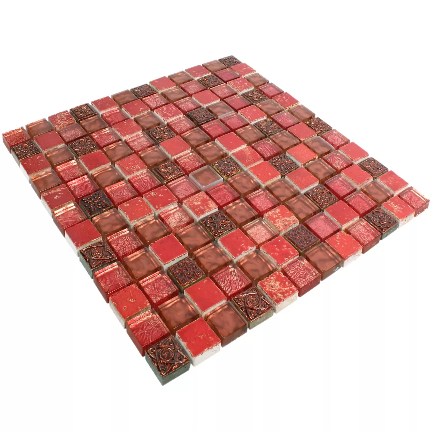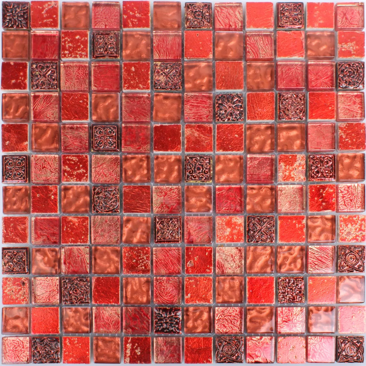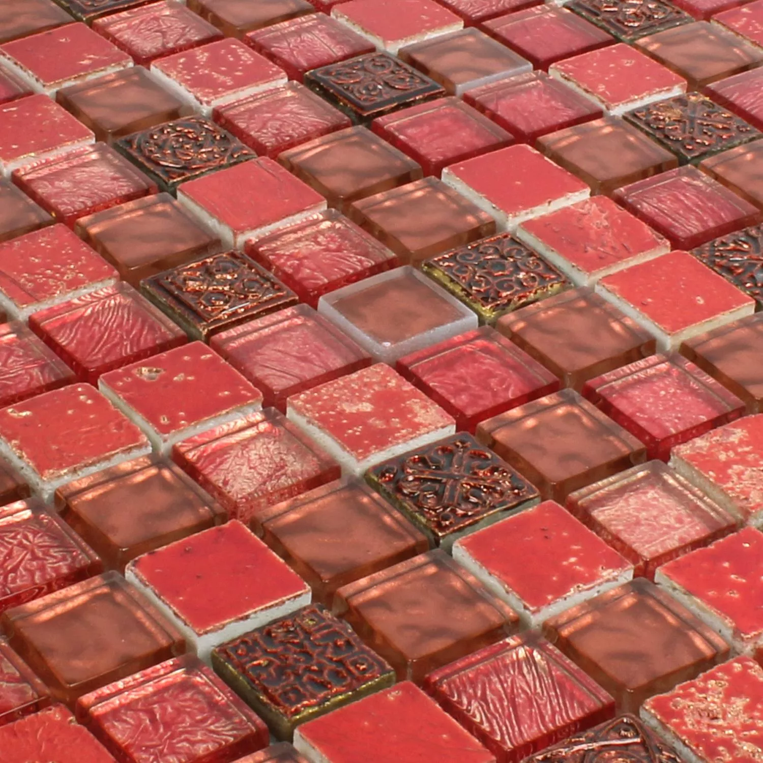 Mosaikplattorna Glas Natursten Maya Röda bågar är mesh-bundna. Dessa plattor kan användas som bårder, såväl som väggplattor som appliceras över ett brett område. Lagda som en bård ger plattorna en trendig höjdpunkt och luckrar upp atmosfären i rummet. Dessa plattor är lagda som breda väggplattor och ger en rustik stil. Innan man limmar dessa plattor bör de först placeras på väggen för att kontrollera önskat färgspel. Färgintensiteten hos dessa plattor är särskilt tydlig genom reflektion av ljus. Dessa Maya glasmosaikplattor hjälper till med detta över toaletten, tvättstället, badkaret eller duschen och som väggbeklädnad över bänkskivan bakom diskho och spis. för att sätta accenter i form av bårder eller väggplattor. Implementeringen av kreativa idéer är motsvarande stor.
