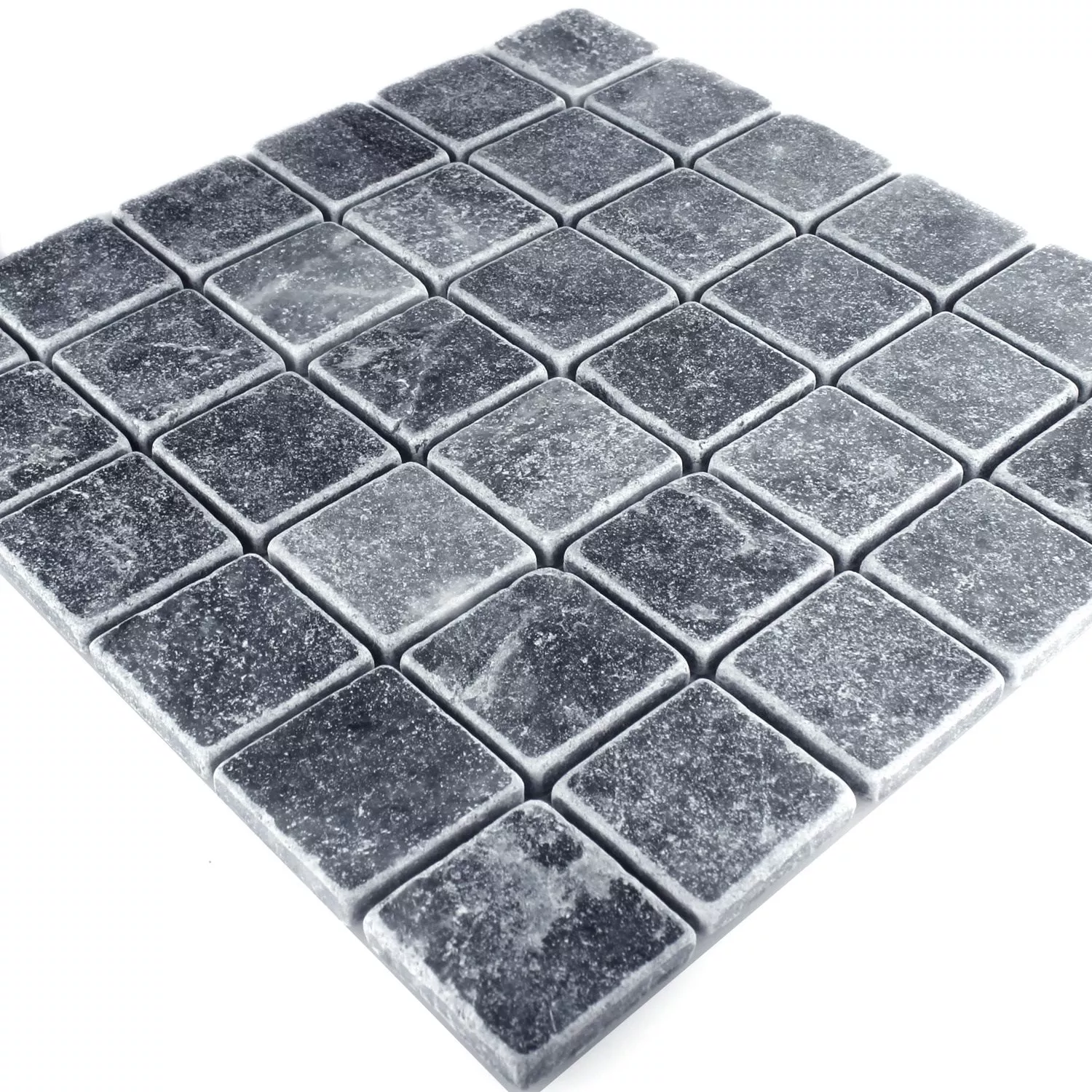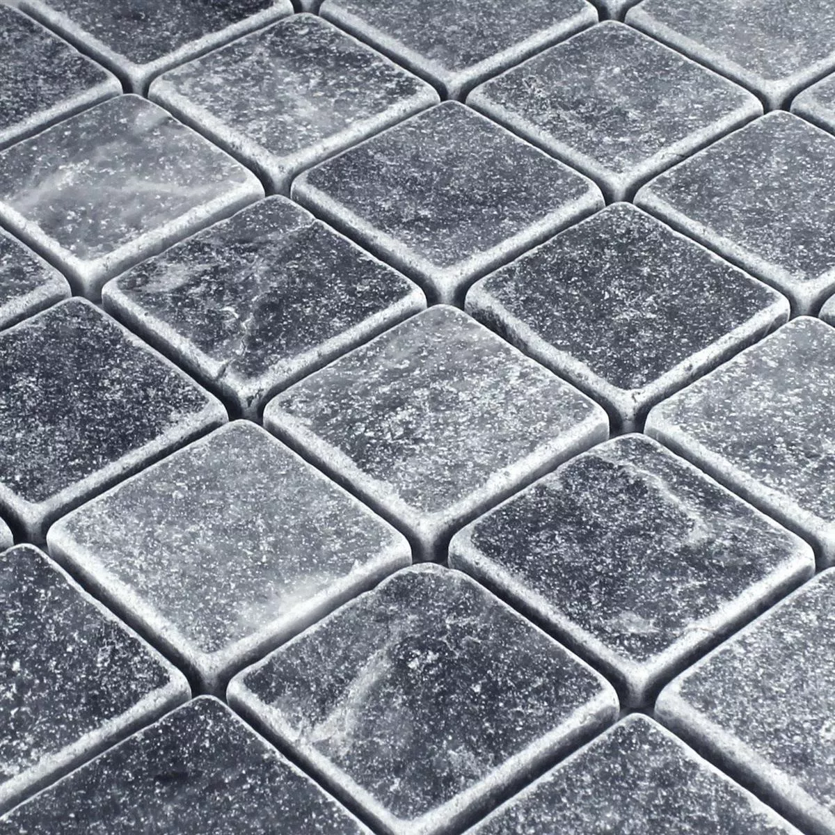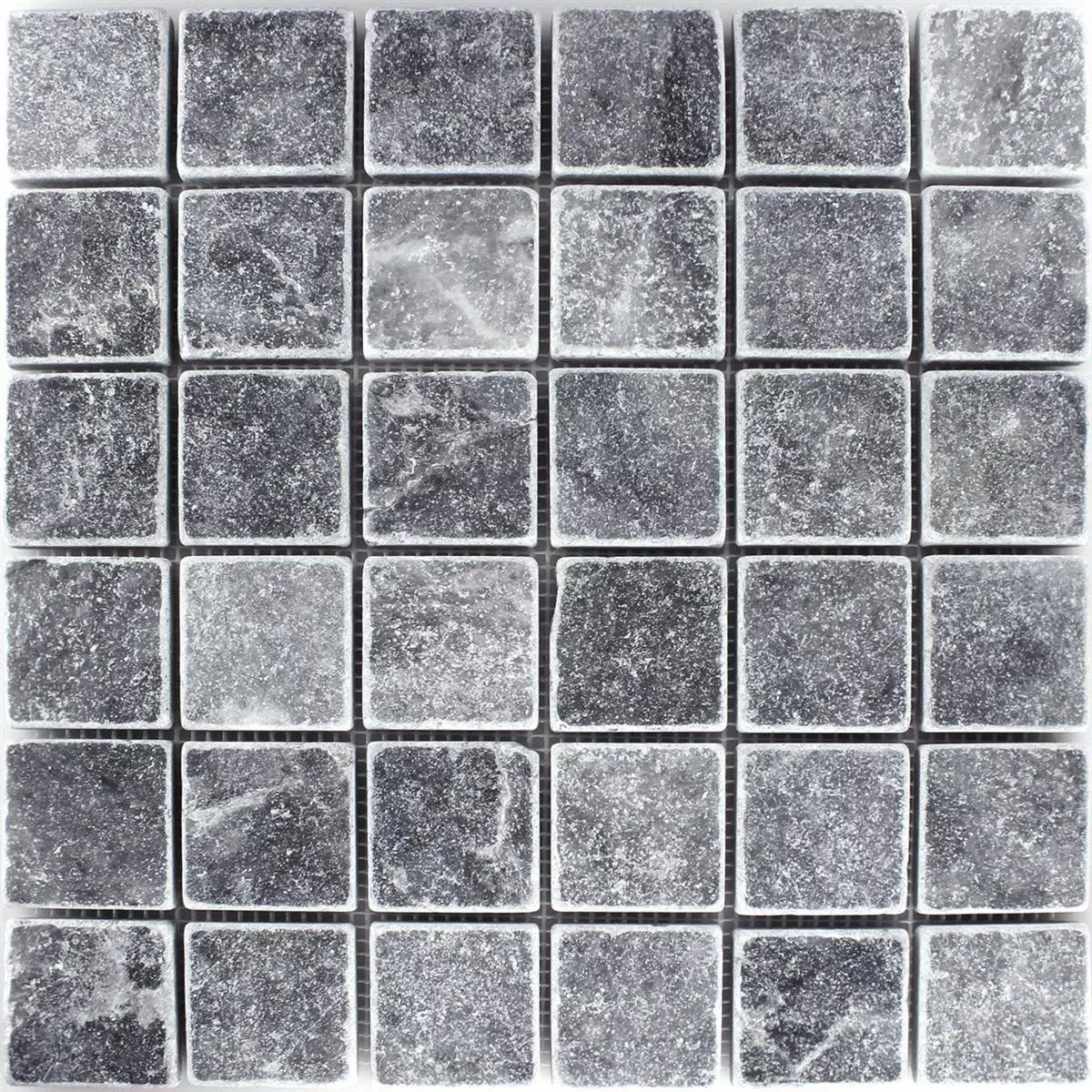 Mosaikplattorna Marble Visso Nero 48 säkerställer den trendiga och moderna wellnesskänslan i badrummet. Plattorna finns som hel kakel, bas, bård och även med profil. Den nästan svarta marmorn tillverkas i önskad form i fabriken och kan installeras direkt hemma. Naturstensplattorna Marble Visso Nero är gjorda av äkta marmor. Detta säkerställer att plattorna alla är mycket robusta. Att lägga i många rum är lämpligt. Framför allt är badrummet eller köket avsett för dessa plattor. Självklart går plattorna även bra att lägga utomhus eller på altanen. Materialet är extremt värme- och kylbeständigt och håller länge.
