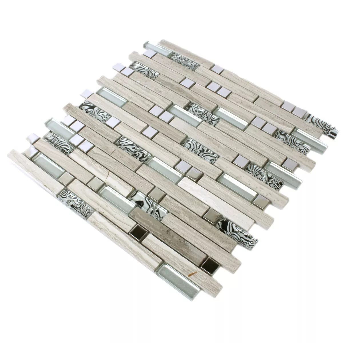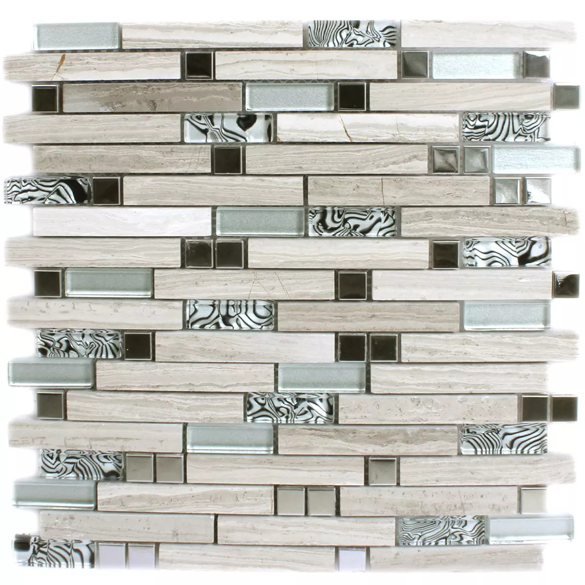 Mosaik Metall Glas Natursten Grå Silver Svart Mix