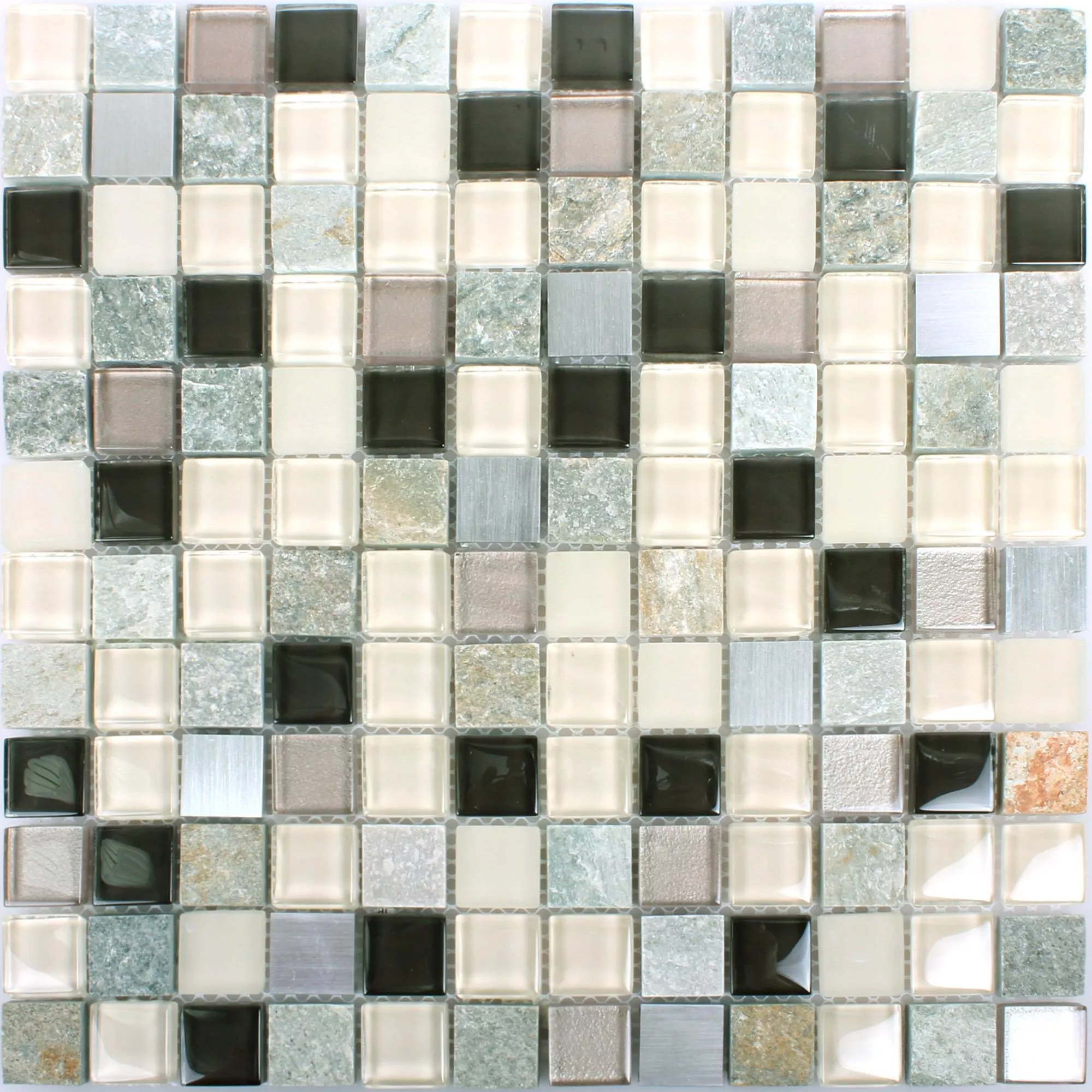 Med de vackra plattorna kan ett extraordinärt utseende uppnås. Mosaikglasplattorna imponerar med arrangemanget av transparenta och metalliska ytor. Genom att kombinera olika färgvarianter kan många andra vackra och intressanta effekter också skapas. Färgade ljuseffekter är mycket populära i modern inredning. Mosaikglas och metallblandningar i brunt och beige ger rummen en sval, diskret elegans.