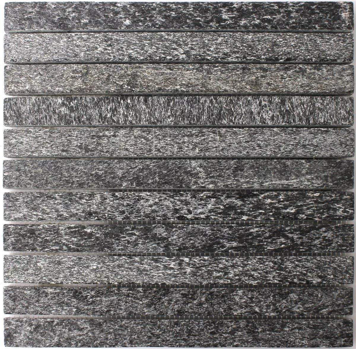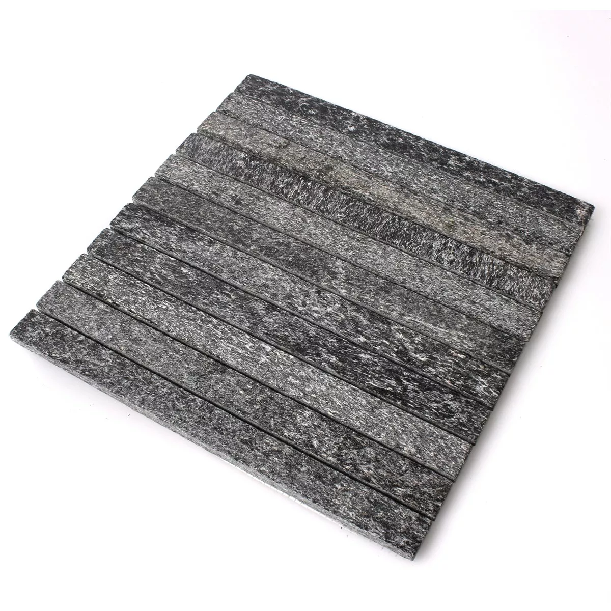 De moderna mosaikplattorna med motivet Hatay Black imponerar med en naturlig look som är idealisk för alla väggar i huset. Dessa naturstensplattor erbjuder en grov struktur som ser slumpmässigt trasiga ut. De högkvalitativa väggplattorna i stenlook är gjorda av 100 procent kvartsitmosaik. Naturstensplattorna är lättskötta, så att de imponerar med sin fina stenlook vid varje tillfälle. Eftersom väggplattorna finns i en subtil svart ton, kan dessa mosaikplattor perfekt kombineras med naturstensplattor i andra färger. Även små rum får en oväntad bredd tack vare väggplattorna i stenlook. De trendiga väggplattorna läggs snabbt. Liksom alla naturstensplattor har de en lång livslängd, vilket gör dem till en bra investering i vilken gammal eller ny byggnad som helst.