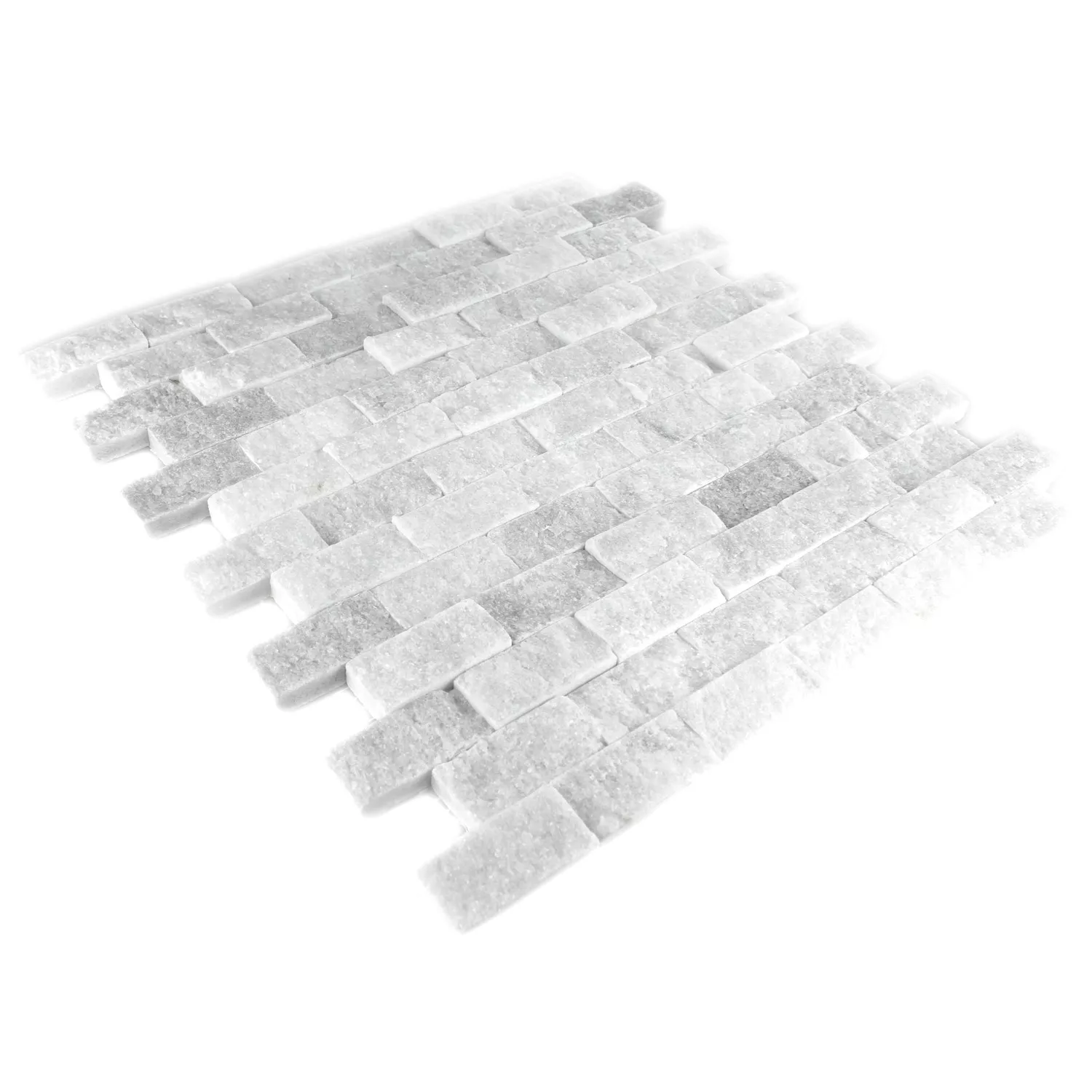 Mosaik Natursten Marmor Treviso Brick Vit 3D
