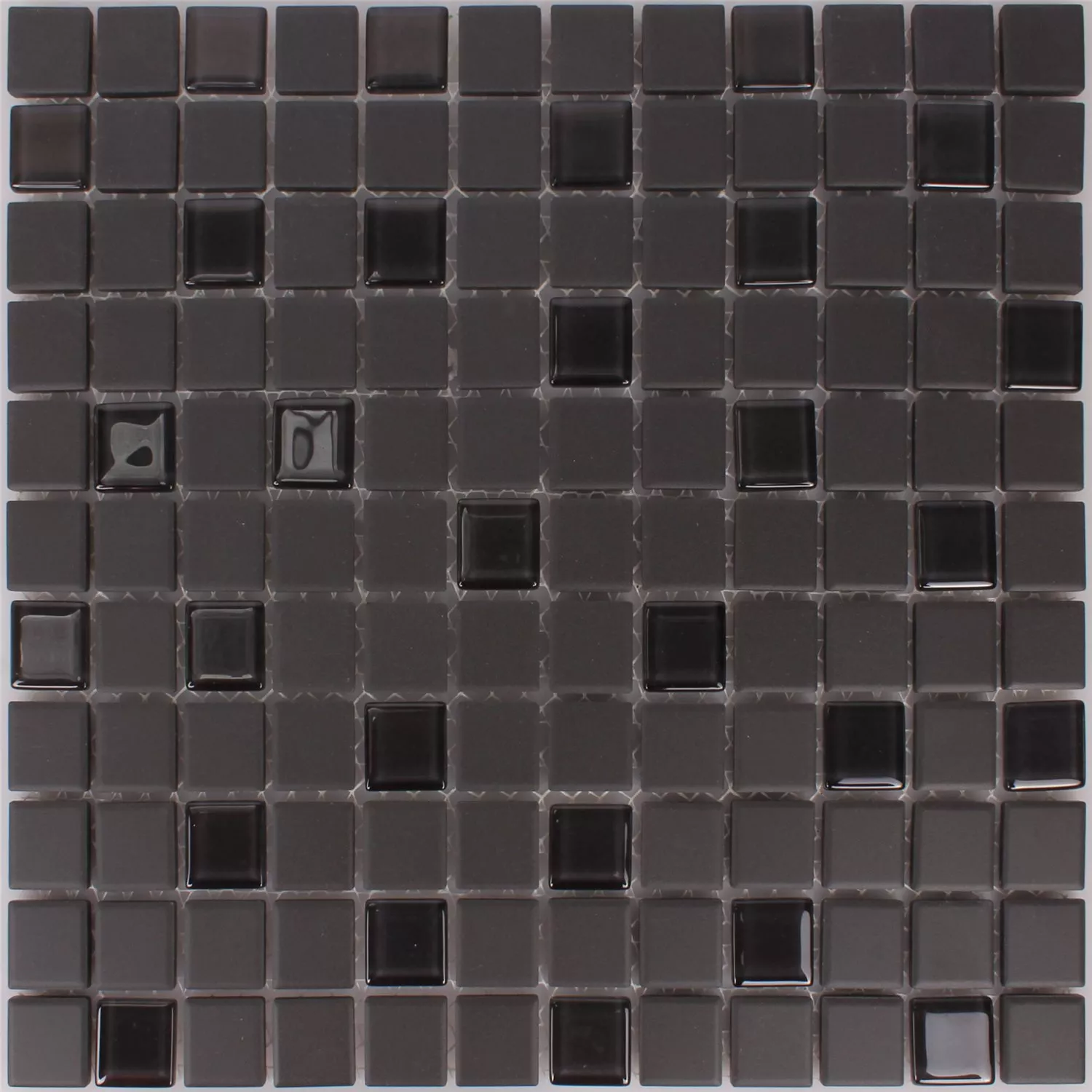 Mosaikplattan "Trädgård" i svart kombinerar modern design med mångsidig funktionalitet. Denna platta är gjord av en högkvalitativ materialblandning av keramik och glas, kombinerat med en attraktiv ytstruktur som skapar både matta och glänsande accenter. Stenstorleken på 25x25 mm och en tjocklek på 5,2 mm säkerställer en robust och hållbar konstruktion. Varje platta finns tillgänglig i ett kvadratiskt format på 32,6x30 cm och täcker en yta på 0,098 m² per matta.
