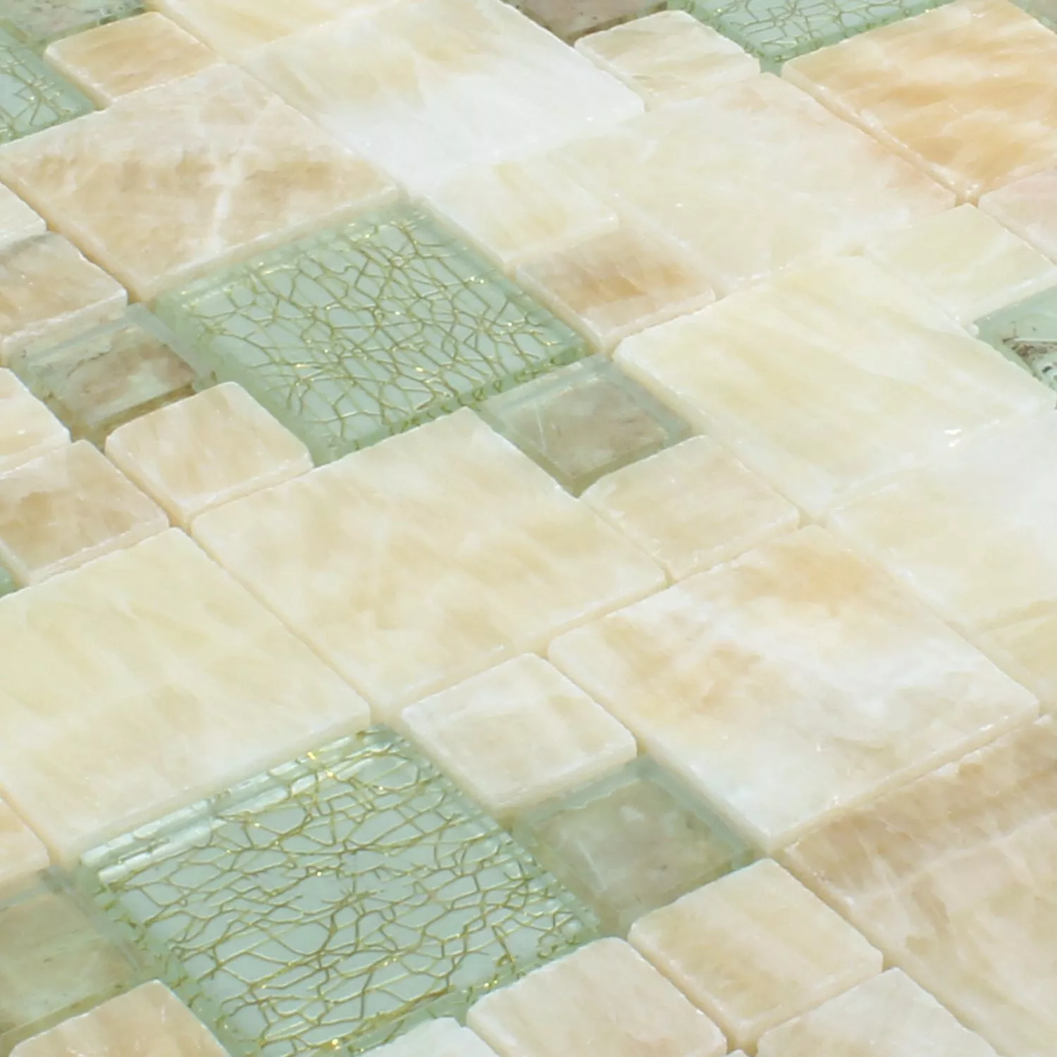 Mosaikplattor är moderna och fungerar som bårder, golv eller väggplattor. Om du letar efter en stilren och högkvalitativ golvbeläggning är glasmosaikplattan Onyx Larinera i Gold Mix det rätta valet. Ett stort urval av kakelmattor finns i avsnittet Glas Natursten Mosaik.