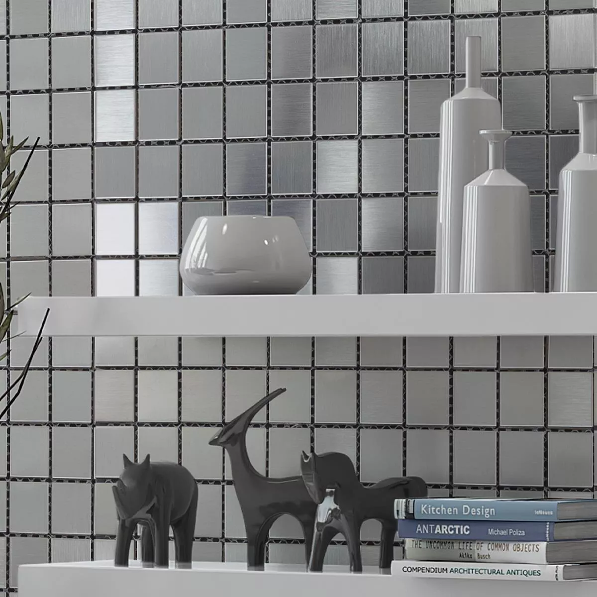 Dessa mosaikplattor i rostfritt stål är särskilt lämpliga för kakelplattor i kök eller badrum och ger ditt hem ett modernt utseende. Även om de inte är lämpliga för våtutrymmen, erbjuder de en idealisk lösning för stilfulla interiörer som vardagsrum och kök.