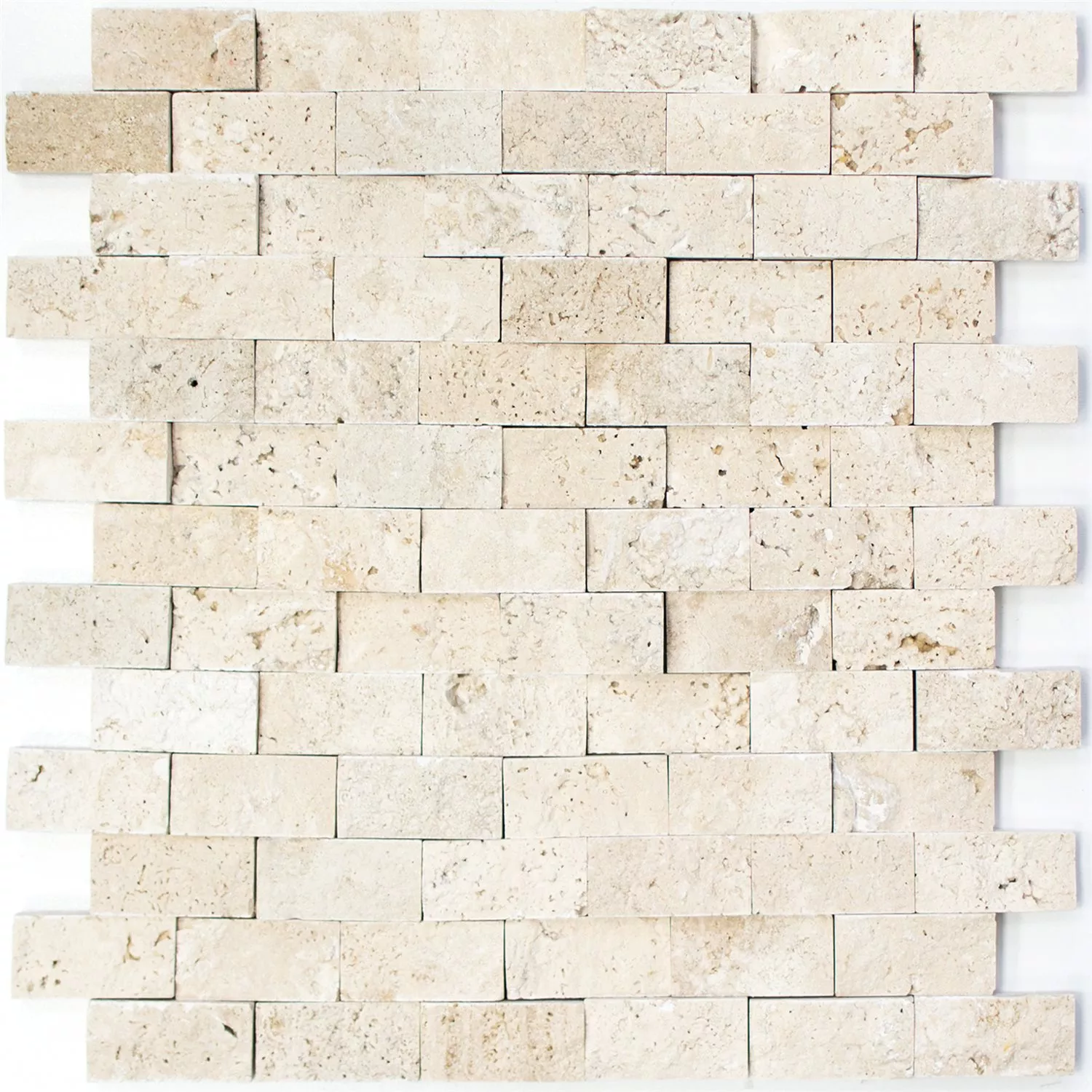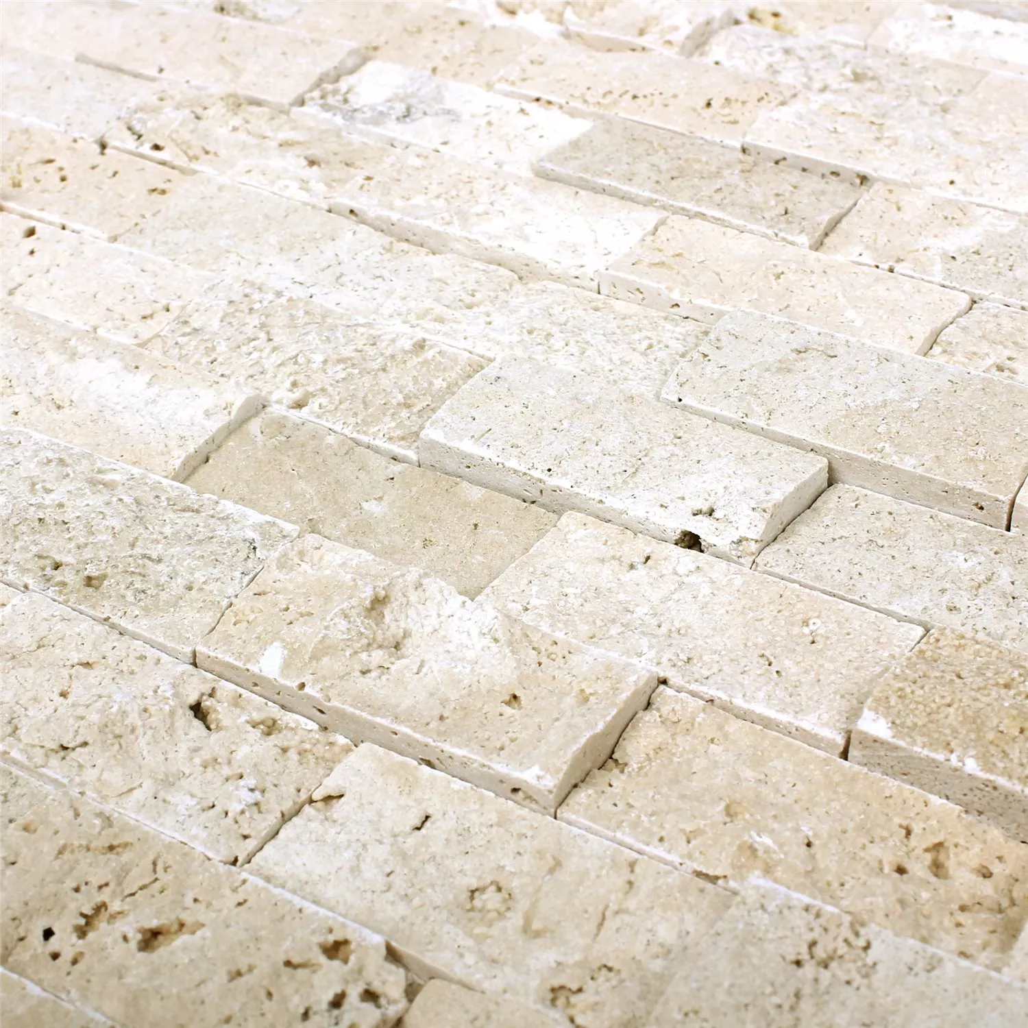 Travertinmosaikplattorna Barga beige 3D kan också läggas som ett "romerskt band". Kakelpaket monterade för detta ändamål gör denna uppgift ännu enklare. Genom en kombination av de olika kakelformaten och mosaikplattorna kan ytor utformas som inte längre går att överträffa vad gäller unikhet. Det finns inga gränser för din fantasi med dessa plattor.