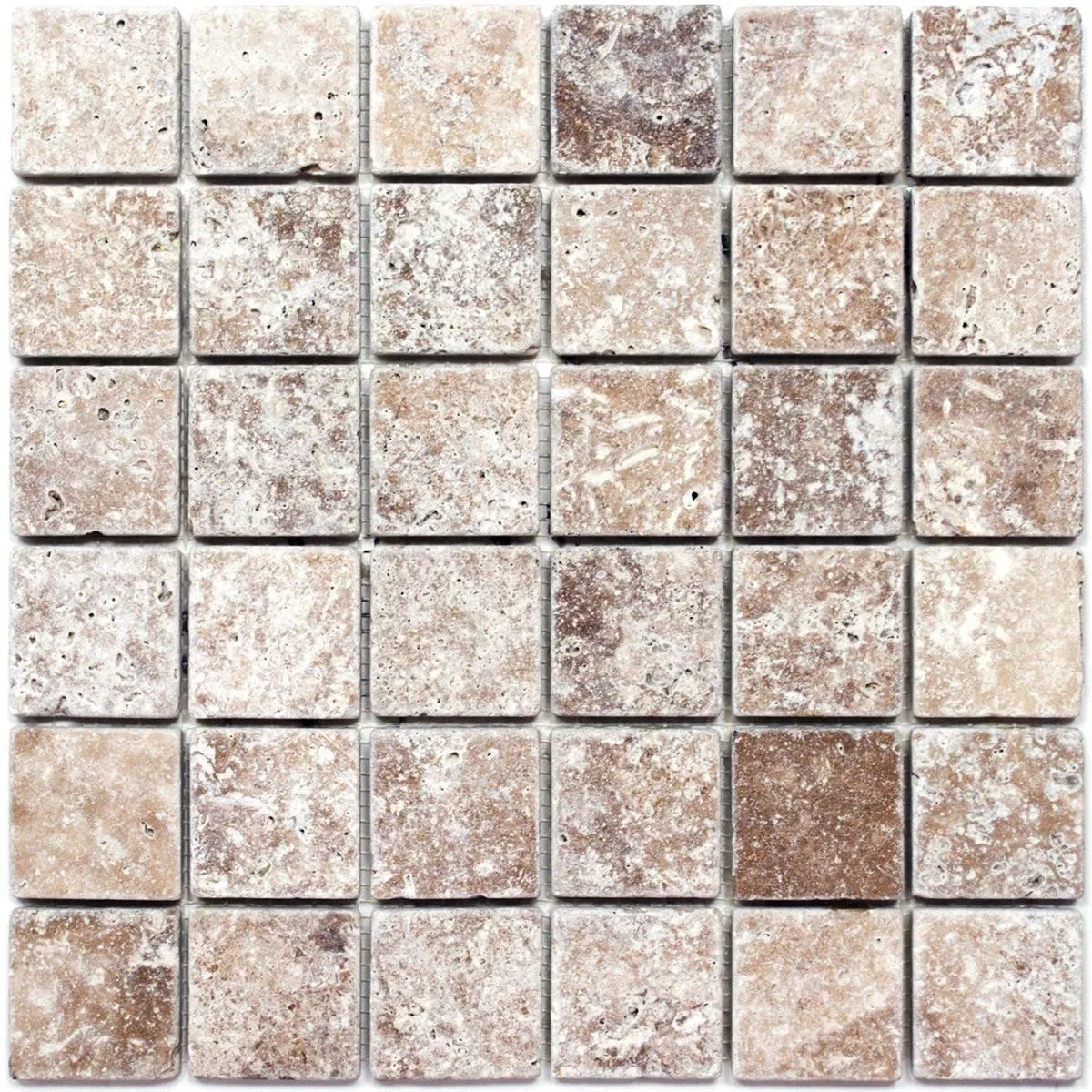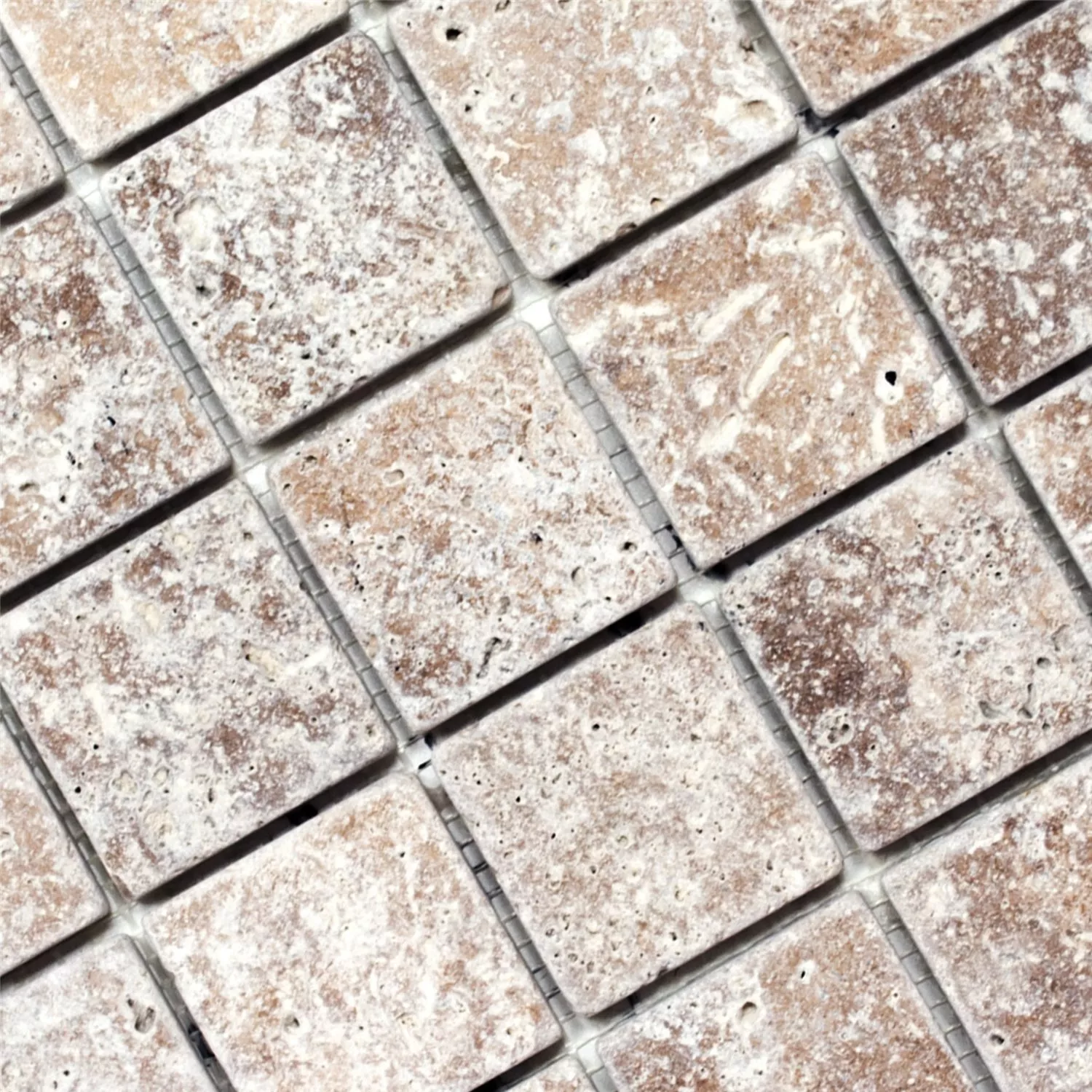 Patara Noce 48 travertinmosaikplattor är gjorda av terrestra sedimentär bergart, bildad av en process av snabb utfällning av kalciumkarbonat vid mynningen av varma källor eller i kalkstensgrottor. Travertin Patara Noce har ofta ett fibröst eller koncentrerat utseende och finns i vita, bruna, krämfärgade och rostiga varianter. Dessa naturstensplattor ger unik värme till kök, vardagsrum och badrum. Travertin används ofta i moderna hem som ett naturligt och starkt byggmaterial.