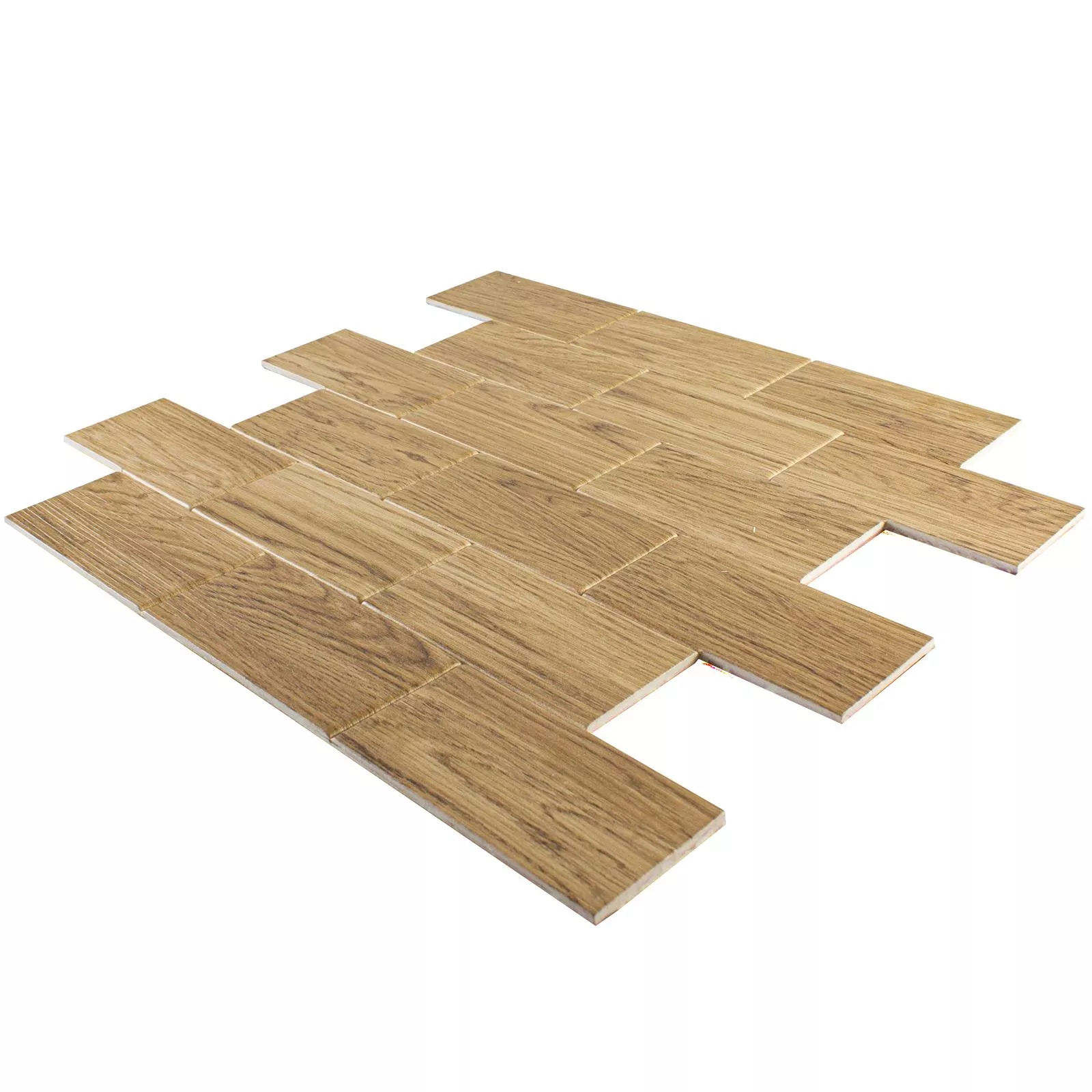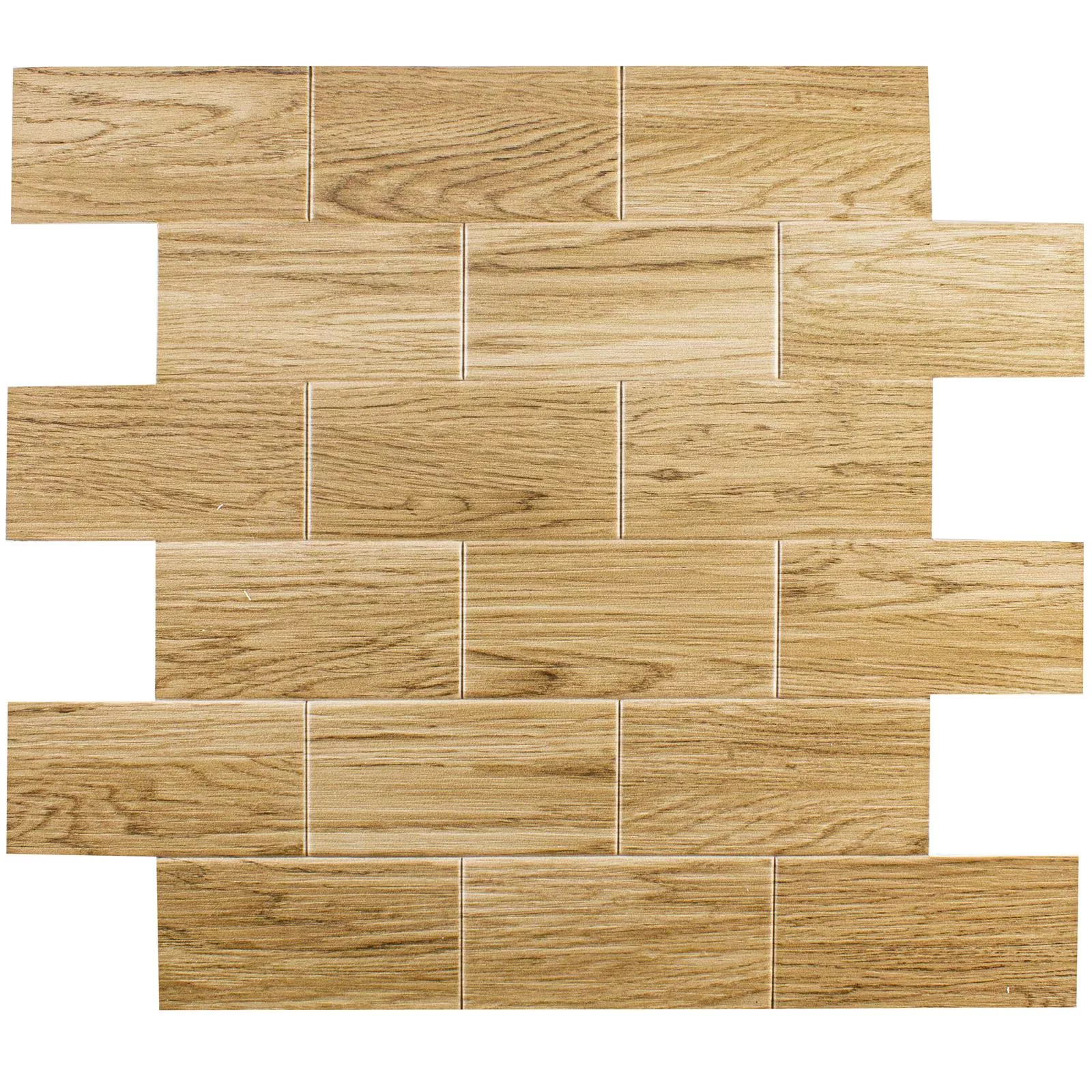 Medusa mosaikplatta i brunt ger en stilren trälook och är gjord av vinyl, som är känt för sin hållbarhet och användarvänlighet. Denna självhäftande mosaikplatta är perfekt att använda på väggar och gör installationen enklare eftersom inget extra lim behövs.