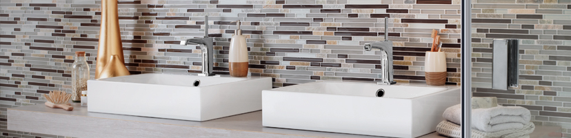 Mosaikplattor, kakel och naturstenglas kan också kombineras med varandra.